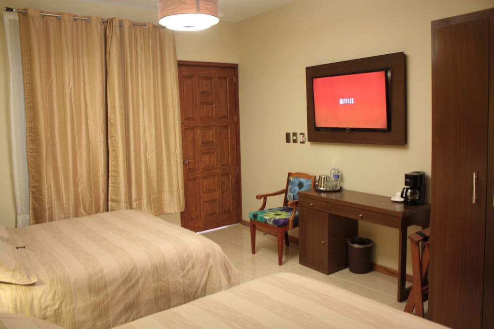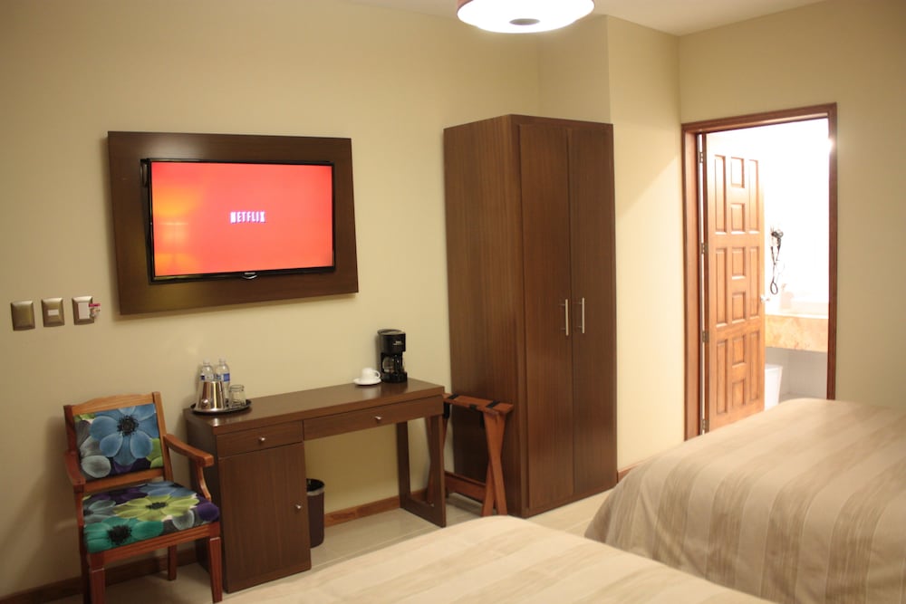 The hotel is located right in Centro and the rooms are fully equipped, comfortable and in excellent condition. The owners both speak English as well as Spanish and are an excellent source of knowledge both the local area and Mexico in general. They're both very nice and hospitable. The internet works well and the rooms are equipped with coffee makers, good air conditioning, hair dryers and pretty much everything you would need. On top of all that the price is great. And I almost forgot to mention that there's a terraza on the rooftop that gives fantastic views of the city and surrounding areas.