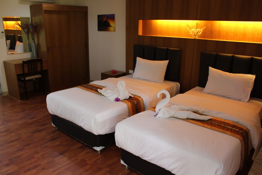 C'est un petit hotel familial avec seulement 6 chambres, mais c'est justement là l'essentiel. Accueil excellent même tard le soir. Le personnel est jeune et hyper sympa. L'hotel ressemble plutôt à une pension de famille. La piscine était chaude et super agréable au milieu du jardin très bien entretenu. Loin des hôtels de ville situés à ao nang c'est exactement ce que je cherchais. Si vous êtes deux, faites vous récupérer à l'aéroport par le service de navette et louez un scooter une fois sur place sinon faites comme nous louez une voiture à l'aéroport de Krabi, à 5 c'était quand même plus pratique. Les chambres sont très grande. Petit supplement pour un troisième lit. Petit déjeuner très bon servi à l'heure où vous l'aurez demandé la veille. Il sera servi en terrasse devant la chambre. Service de restauration très bon et pas cher du tout. On a mangé sur place presque tous les soirs. Bref je recommande ++++
