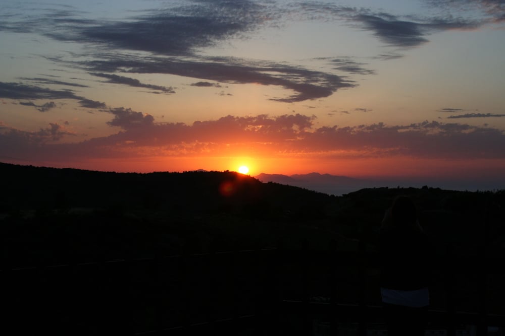 Zimmer zum Pool mit Blick auf der einen Seite zum Meer und auf der anderen Seite zum Ataviros war sehr schön. Schöner Sonnenuntergang. Einfaches Frühstück, aber völlig ok. Taverne hat leckeres Essen zum Abendbrot.