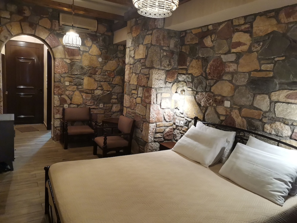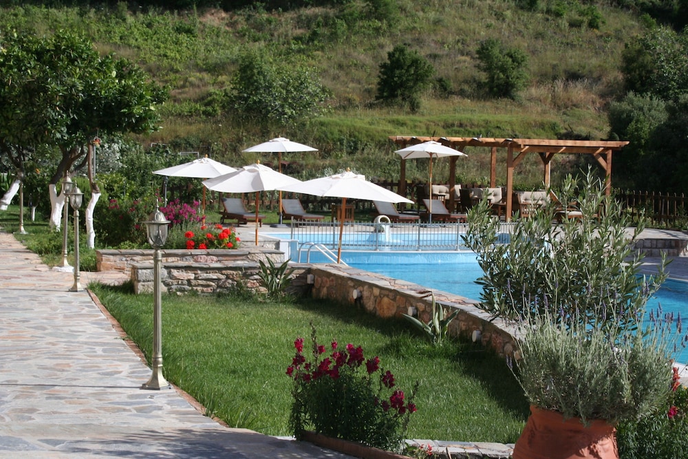 En liten annorlunda hotellvistelse på Rhodos om man önskar komma bort från städerna nere vid havet. Bra läge för utflykter i närområdet och en riktigt fin liten badstrand med taverna 15 minuter från hotellet. Att hyra bil är ett måste, men vägarna är fina med lite trafik och naturen är överraskande vacker. Hotellet ligger i den lilla vinbyn Emponas och byborna är mycket stolta över sina lokala produkter. På dagarna kommer det en rad turistbussar och det bjuds på vinsmakning och lunch. På kvällarna är det betydligt lugnare och endast ett par tavernor är öppna. De sista kvällarna valde vi att äta på hotellet och det var riktigt bra. Härligt att sitta och smutta på det lokala vinet och se solen gå ner i havet. Poolen är fin och välskött och poolområdet erbjuder fin avkoppling.