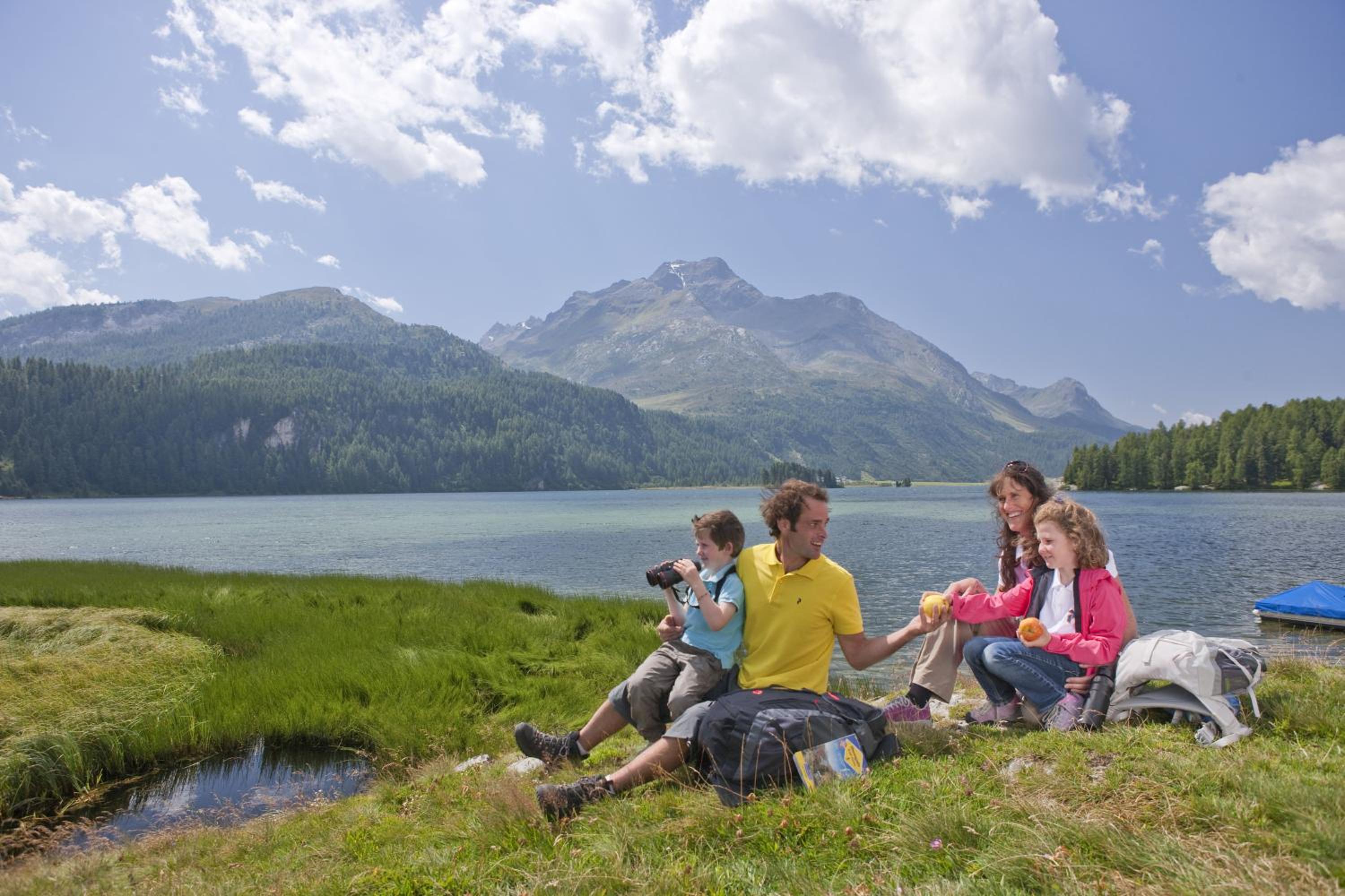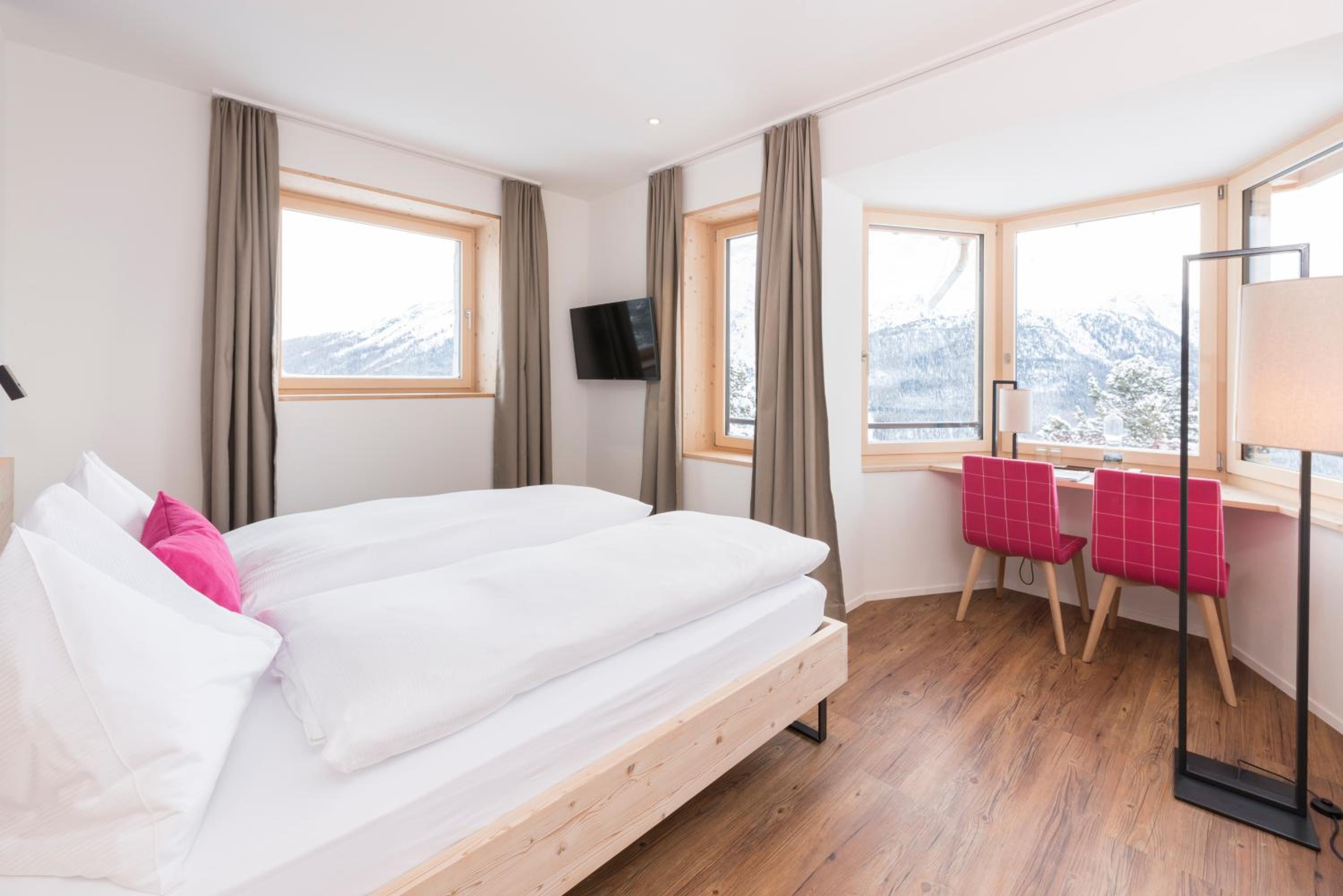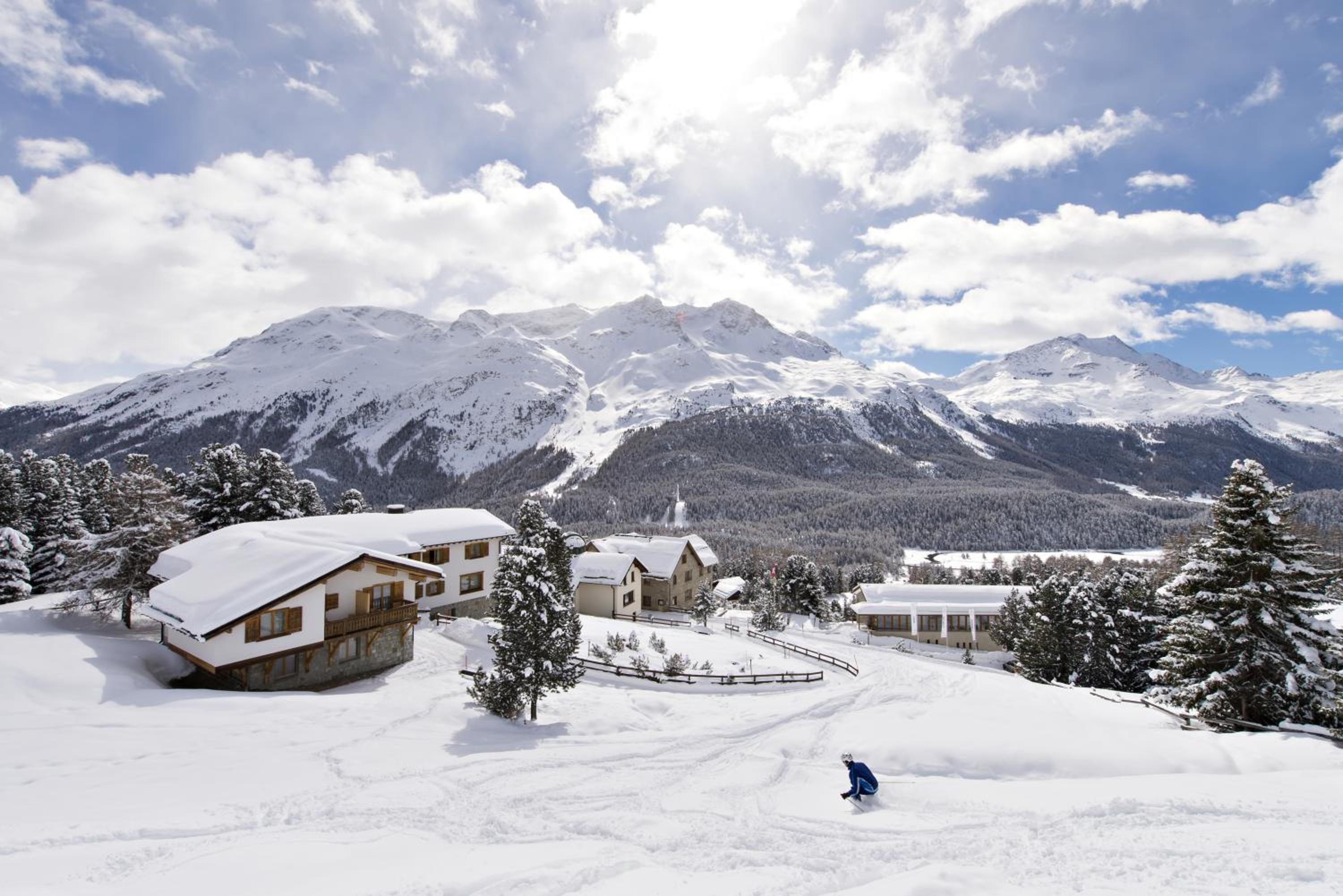 Randolins Familienresort offers a luxurious stay on the edge of Sankt Moritz, just a stone's throw away from the Corviglia Ski Area. The property boasts comfortable rooms with a seating area and TV, along with fantastic amenities such as a spa area with indoor and outdoor hot tubs, saunas, and a steam bath.