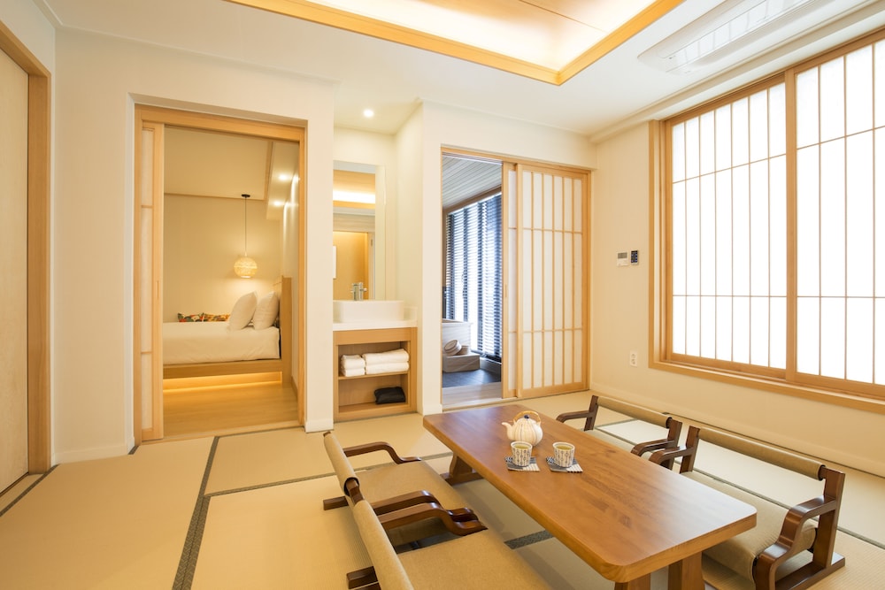 비수기에 조용한 휴식 장소로 추천합니다. 시설은 조금 노화중이나 관리를 잘 하고있어서 거부감없이 체류하다왔습니다. 히노끼 욕조가 있어 온천하는 느낌이 있지만 온천물은 아닌 듯합니다. 거실 다다미 바닥은 세월의 흔적을 피해갈 수 없습니다. 침실공간은 창이 없어 좀 답답합니다. Complimentary water도 있습니다. 석식과 조식은 평범했습니다. 음식수준은 큰 기대를 하지 않으면 드실만 합니다. 조식을 오전 9시에 제공해서, 기다리느라 배가 고픕니다. 조식먹고 11시 체크아웃해야 하는 점은 아쉽습니다. 조식 제공을 조금 일찍해 주면 좋겠습니다만 다 이유가 있겠죠.