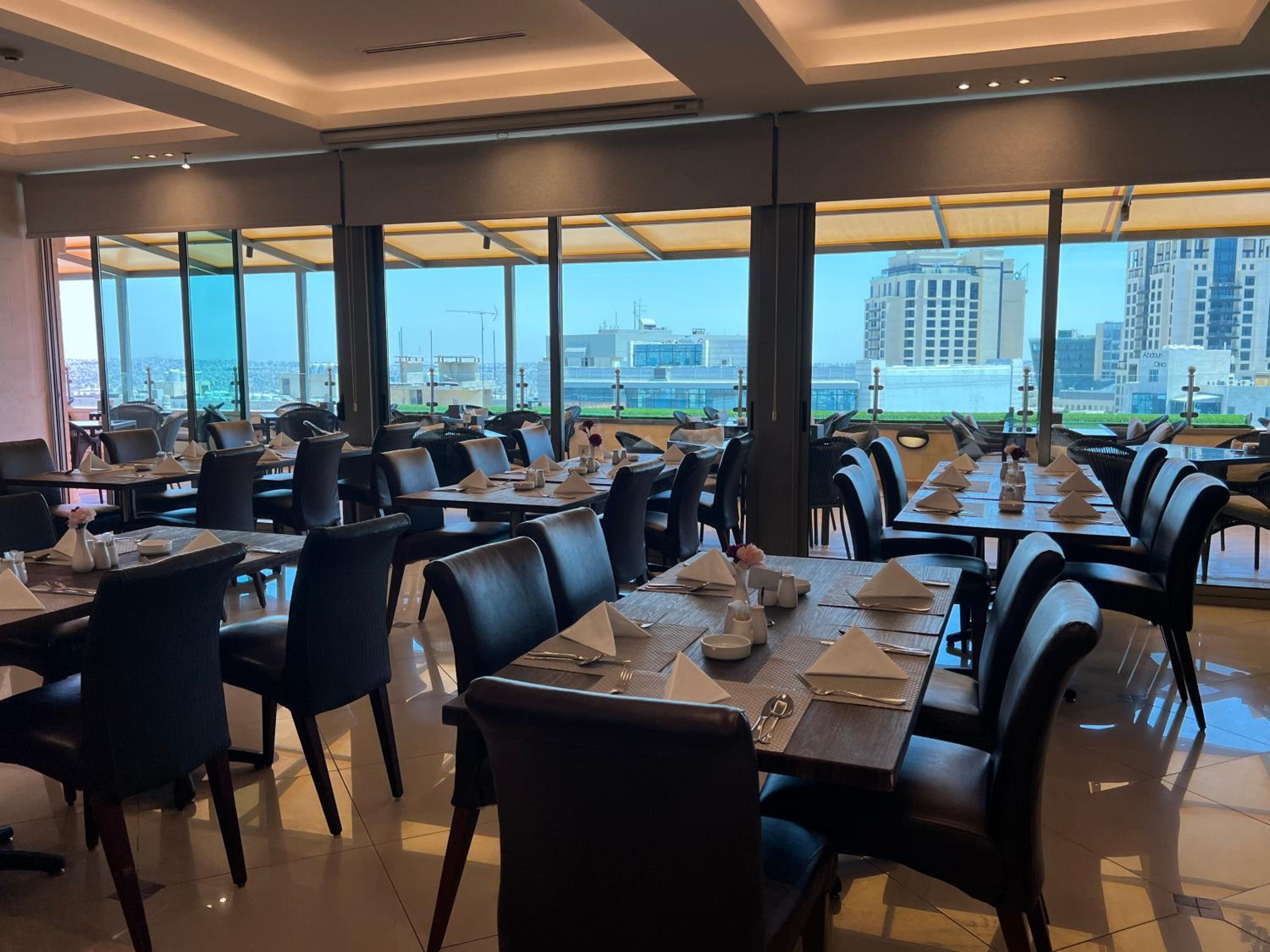 Indulge in a culinary experience at ALAINA Restaurant and Cafe rooftop with stunning views of Amman. Enjoy Mediterranean cuisine, live grill, decadent desserts, and shisha. For a quick pick-me-up, JAV Coffee House serves freshly brewed coffee, light snacks, and desserts.