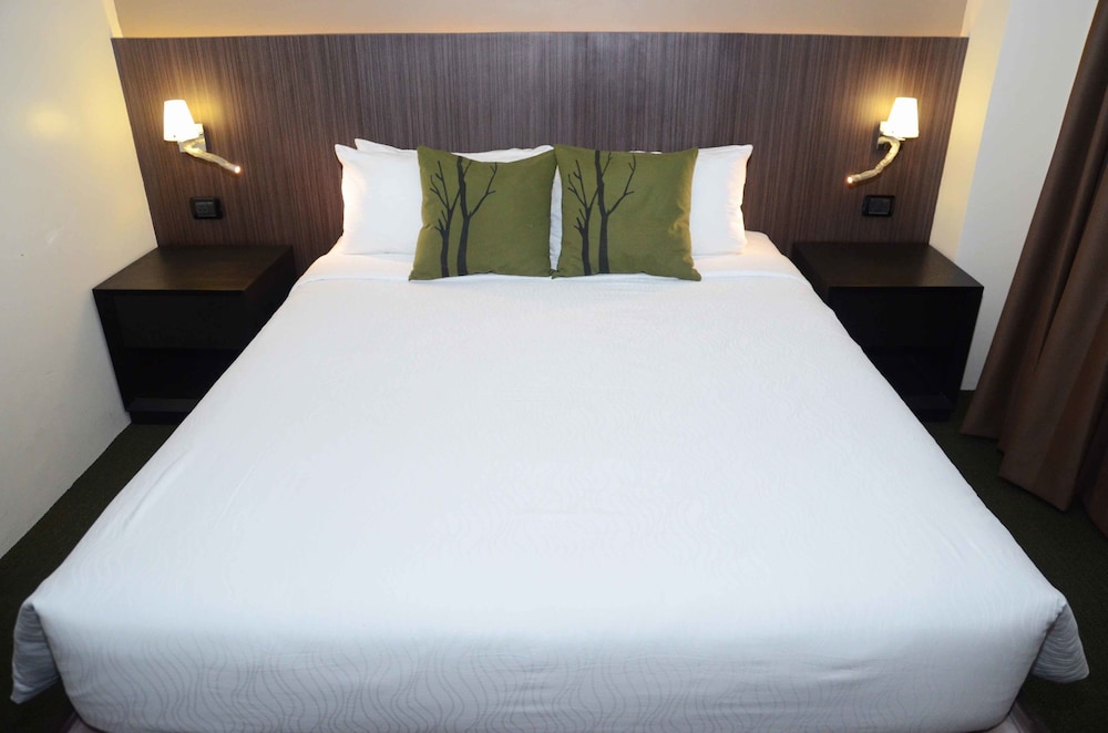 The hotel was booked as a two bedroom with two double beds. There were four people in our group so the hotel demanded another 1700 PHP as the room booked through Hotels.com they claimed was for 2. However breakfast was for 2 (we did not have breakfast), the room was fitted with 2 waters, 2 towels and when talking to staff on different shifts they simply did not seem to know what anything really was. Rooms were very small however the beds were comfortable. I would not stay there again. the 1700 PHP was not shown on "Hotels" and we did not even arrive until 3:00 AM so a real rip off of a place.