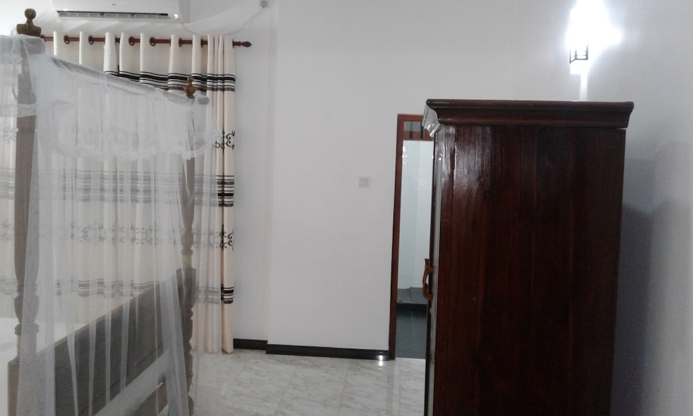 Lovely welcoming, taking through to a beautiful room with a view of the sea :) right next to railway, which is great for us as we love the trains in Sri Lanka! No problem being kept awake by them... great access to the beach, easy to get to local town with cash machine, shops and train station and easy to get to airport from.