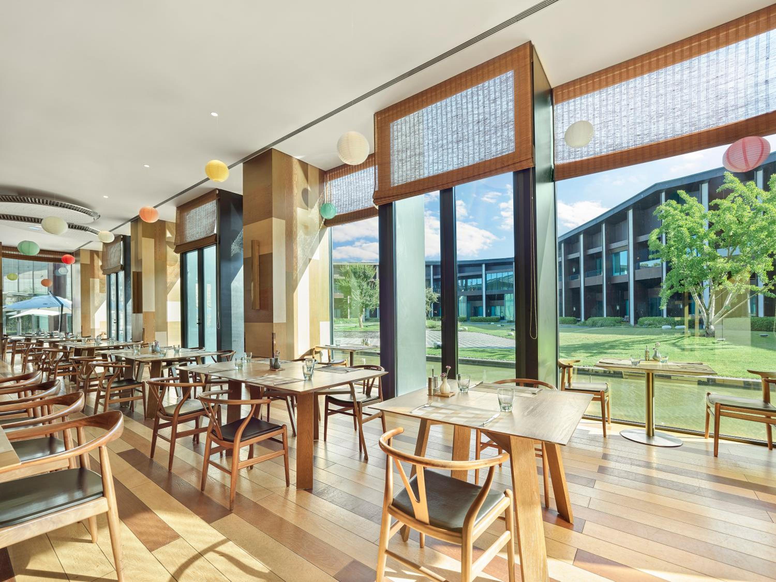 Good environment with a large and well-designed open space surrounding the hotel property. You see plenty of blossoms in spring time. Can access the garden directly from the room, with a nice "balcony area". Hotel hardware is new and well maintained.