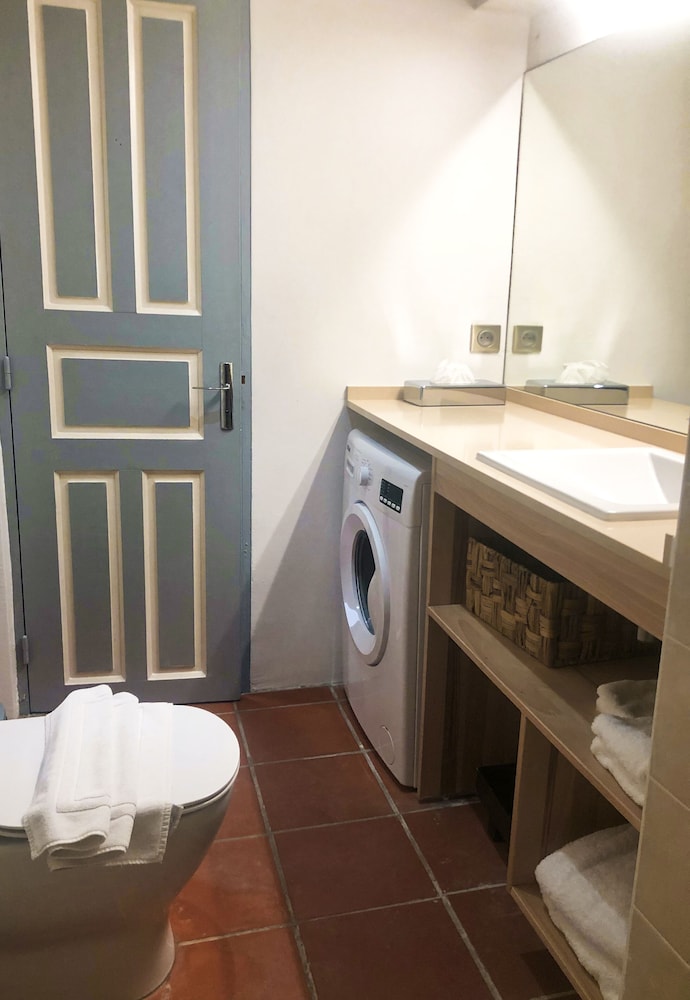 Le Seul bémol vient du fait que la chambre est équipée de volets sans vitre ce qui donne le choix entre ouvrir les volets pour avoir de la clarté et faire entrer la chaleur