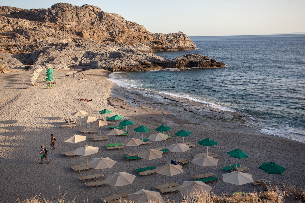 It's a nice secluded little hotel close to a small and cozy beach with pebbles. It's great when the sea is calm, but with waves it's hard to get into water - a lot of rocks, and big breakers. Really dangerous. Also, the hotel provides ambrellas and beach beds for its guests, but charges 5 Euros a day. Which is not right - for its guests the hotel should provide these amenities free of charge, as it's done in other places.