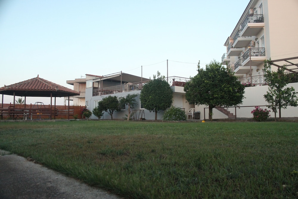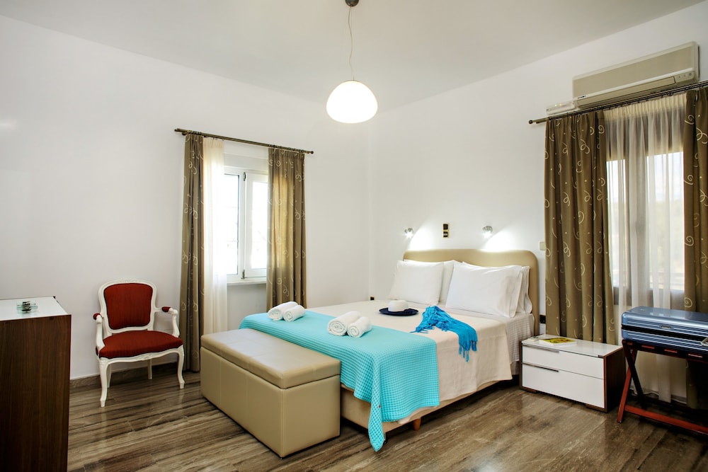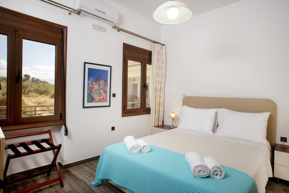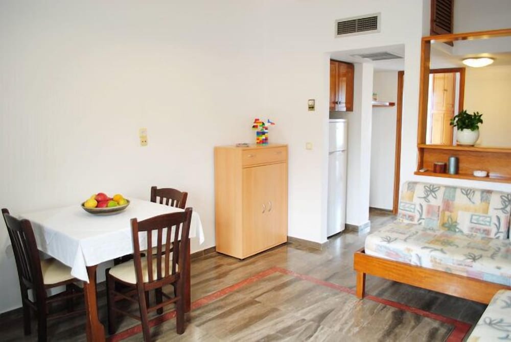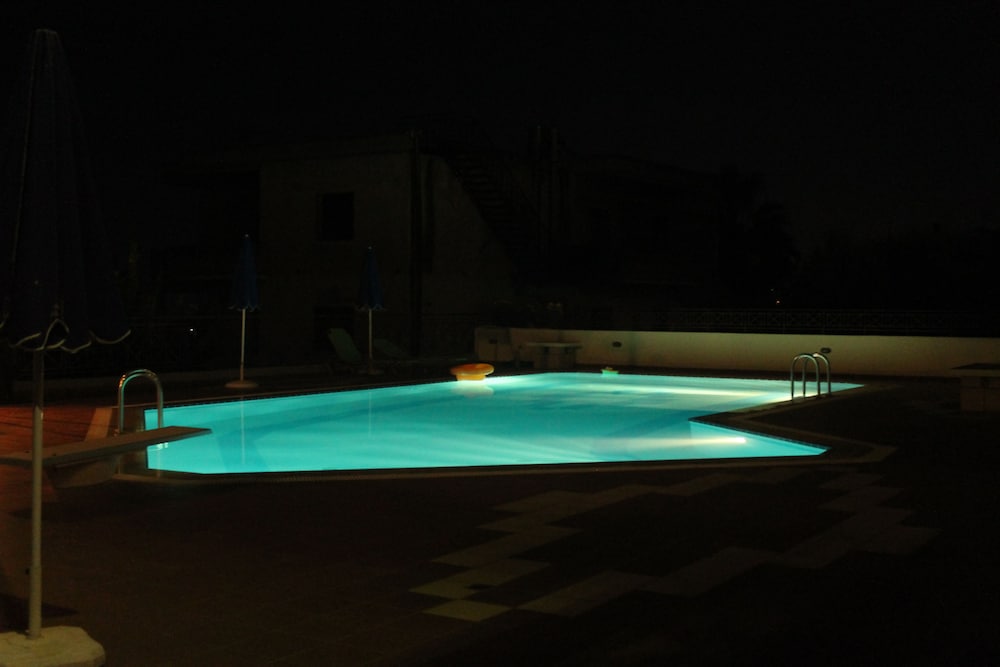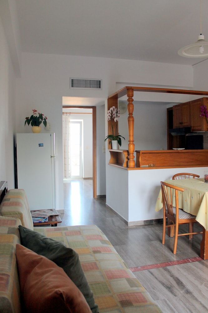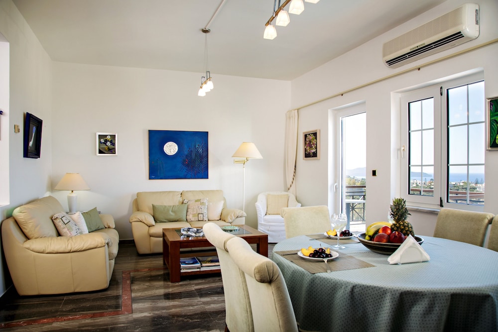 Asuimme kaksi viikkoa tässä huoneistohotellissa Hanian lähistöllä pienessä hiljaisessa mäen päällä olevassa kylässä paikallisten ihmisten keskellä. Huoneisto oli väljä ja toimiva, pieni keittiö riittävä aamiaisten ja satunnaisen aterian valmistamiseen. Parvekkeelta hieno näköala alarinteeseen ja merelle. Pienenä miinuksena parveke oli hotellin pohjoispuolella, joten sinne ei aurinko paljon paistanuut. Myös hotellin uima-allas oli osan päivästä osittain varjossa, ainakin syys-lokakuun vaihteessa.