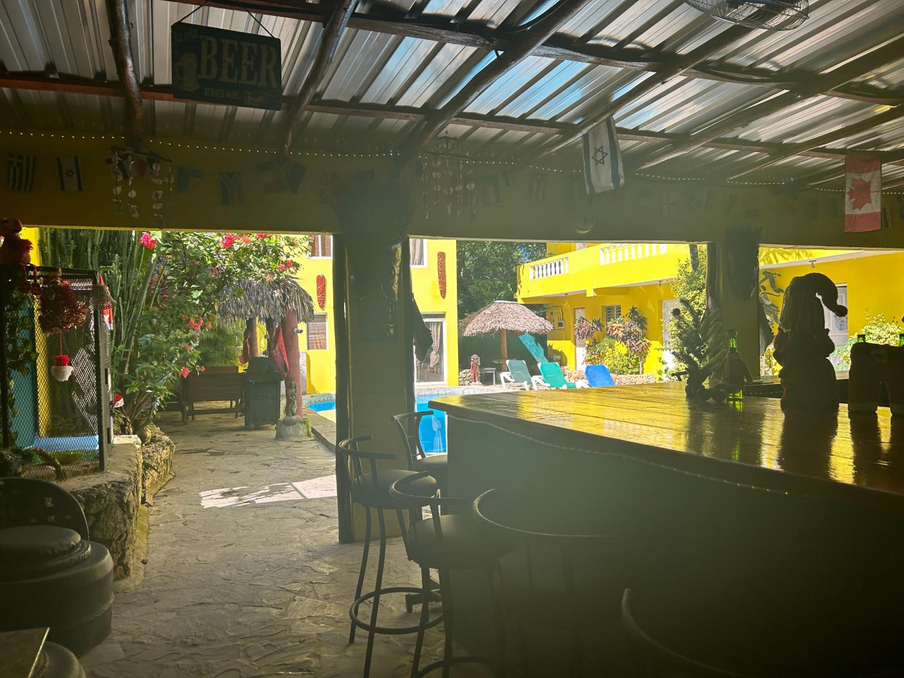 I have travelled worldwide. Went to Sosua enroute to Samana Peninsula. Wow!!!! Ian and Shelley were fantastic. Canadians from B.C. like myself. We went up in the country to a beautiful waterfall with Ians kids. The scenery is gorgeous. Down the street from the Hotel is a beach with calm clear aqua blue water. Not a soul in site. The locals were very friendly. A nearby bank had a secure ATM which is always a relief. Next door is a busy restaurant open 24/7 and the food was delicious. The best part was sitting at the bar watching NFL with people from different countries as the owner Ian shared stories of his many adventures.My girlfriend needed some medicine. Shelley a former head nurse went out of her way to take her to the Farmacia a block away and translate her needs. All in all we couldn't be happier. After Samana we were going to head to Punta Cana but have decided to return to Sosua and see more of the sights. Close to our return flight from Puerto Plata airport which is about 15 minutes away. Bring a hat is very hot!!!!