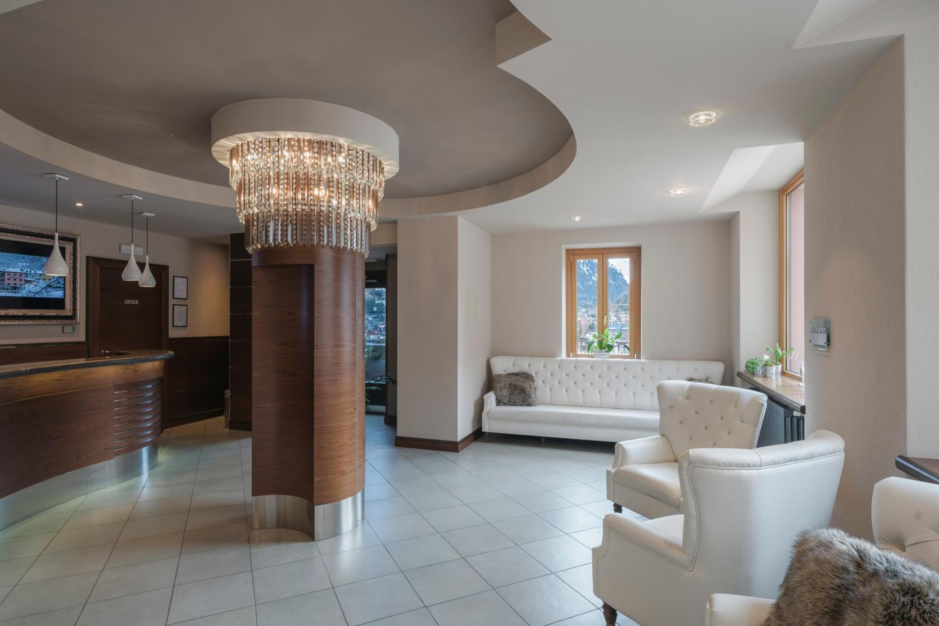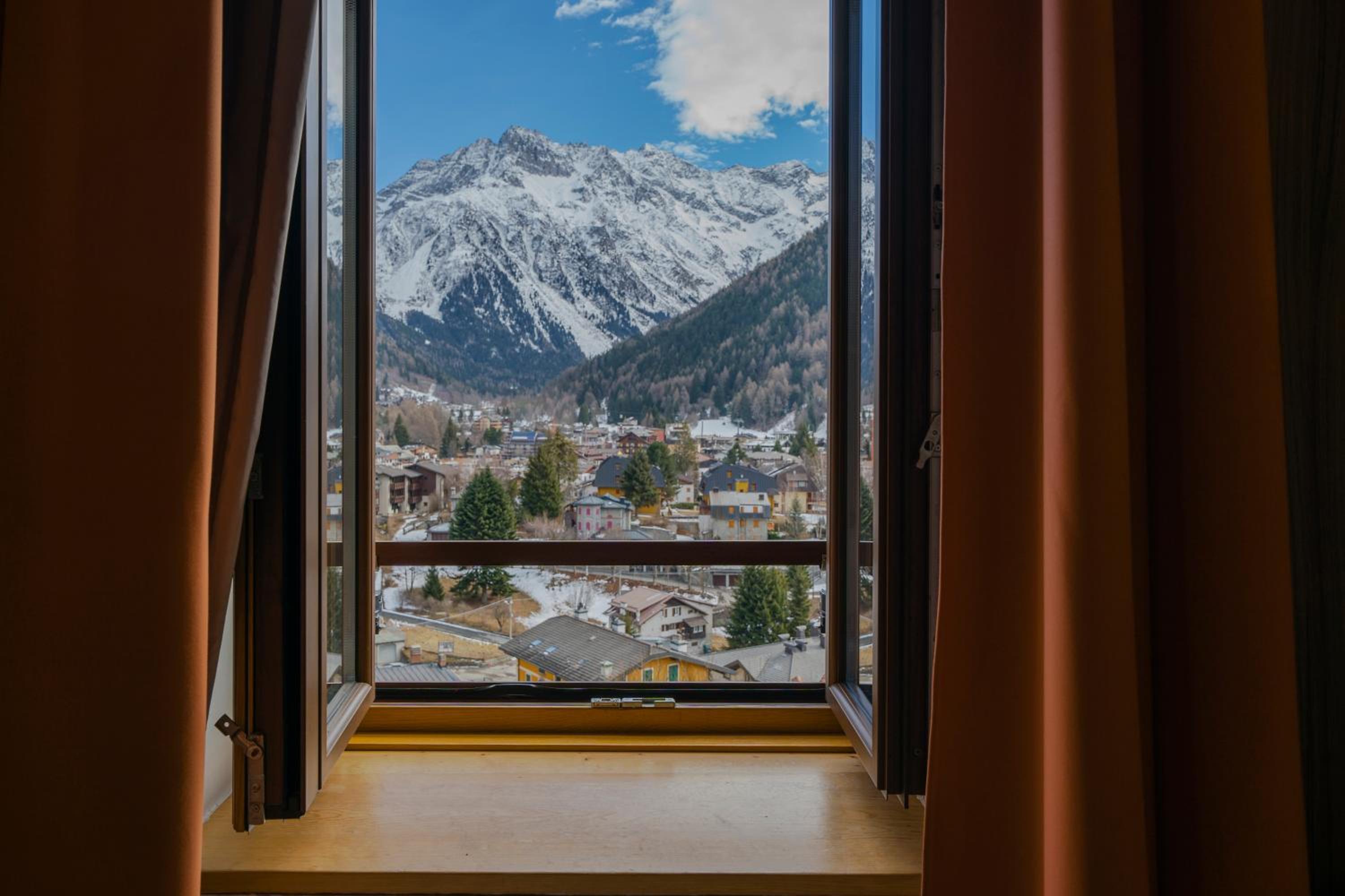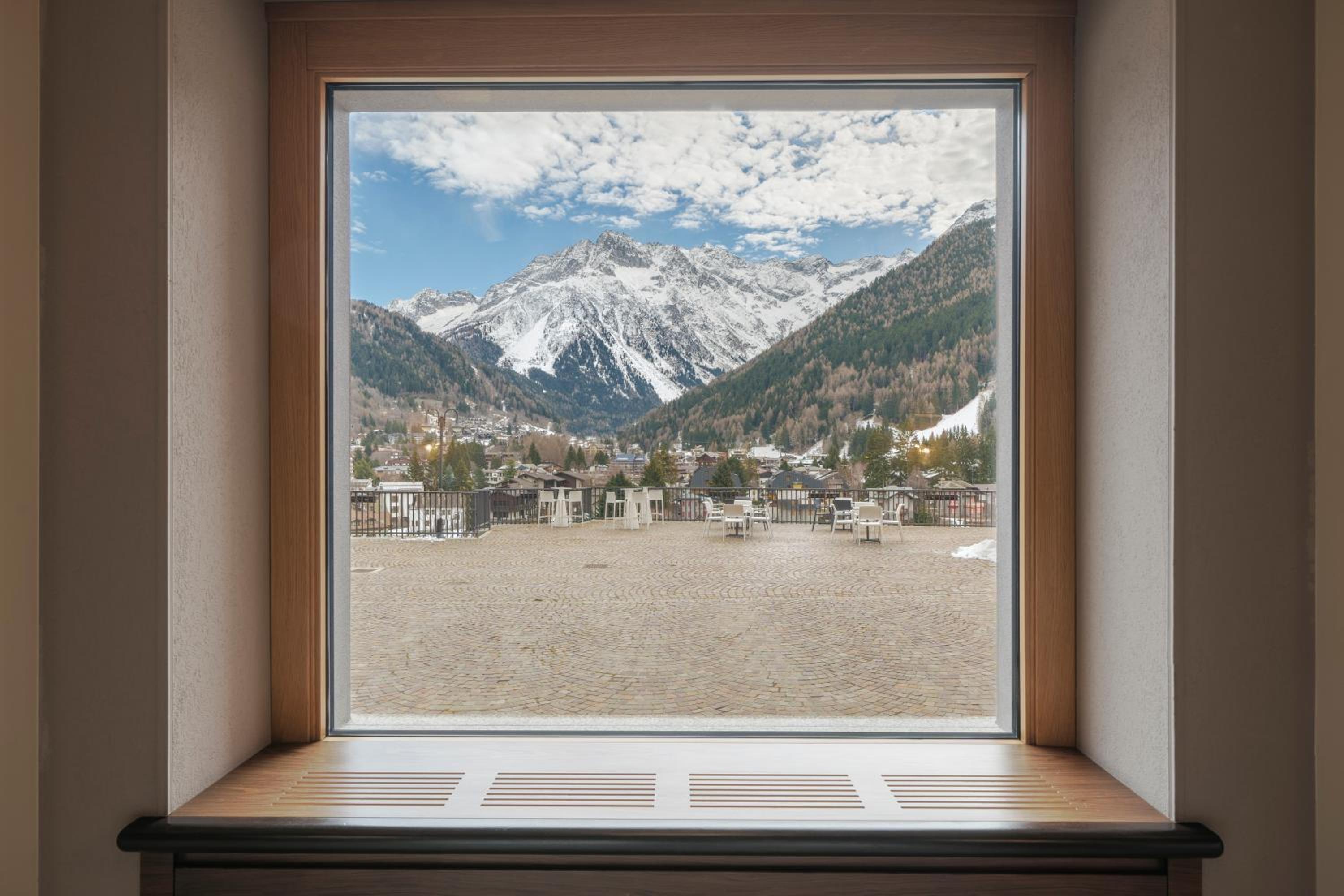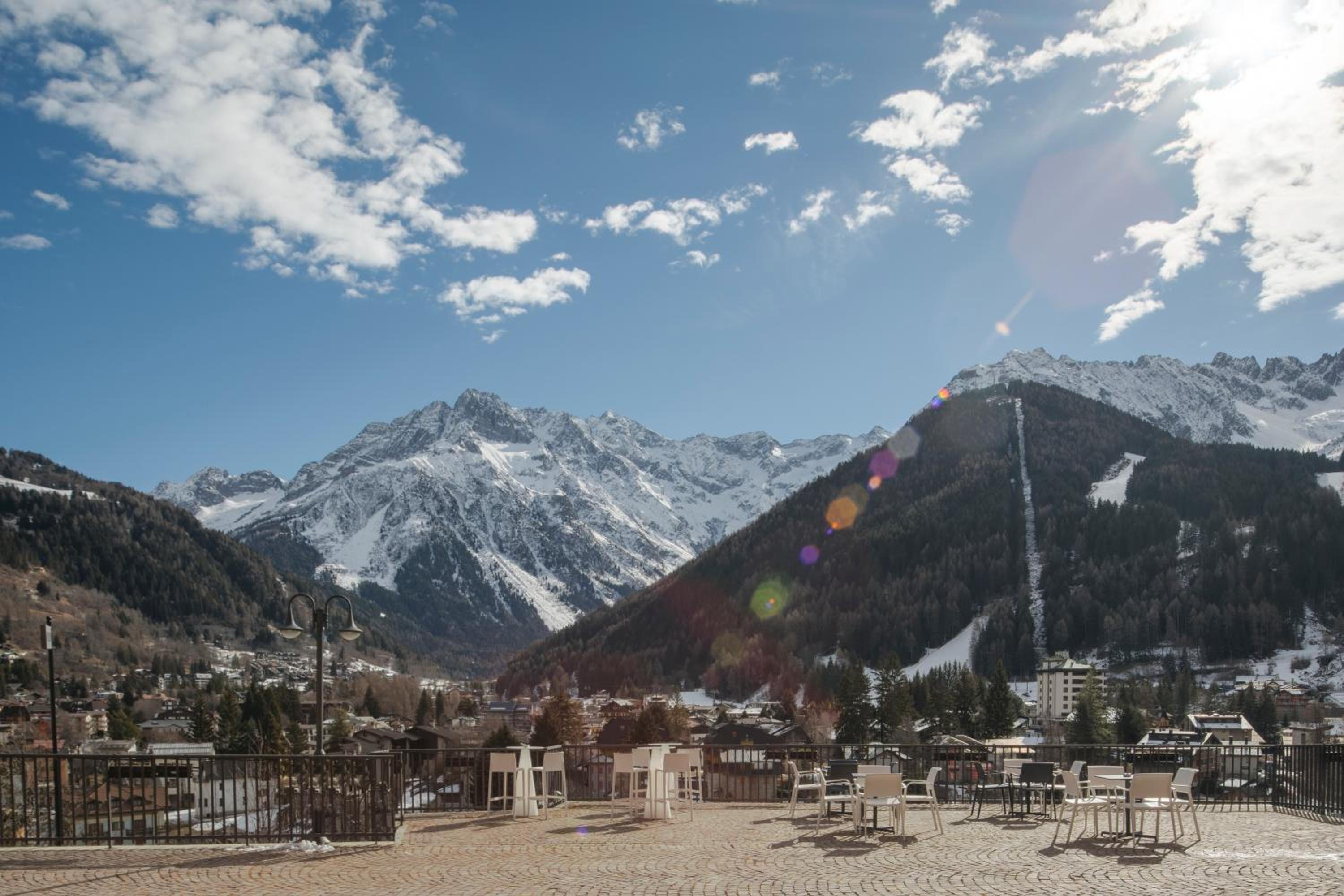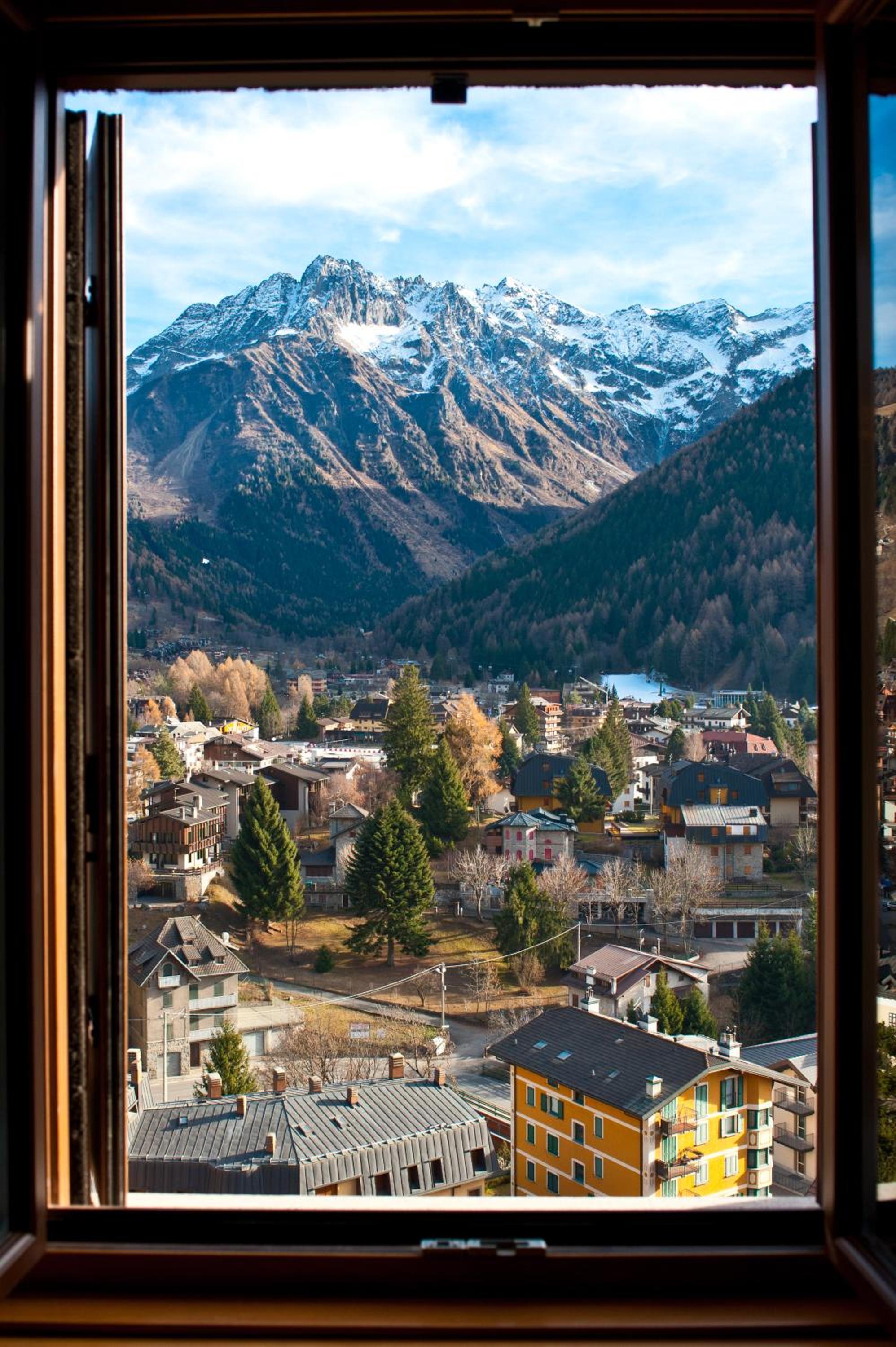 Its commanding view across the town of Ponte di Legno. In the main staff pretty helpful. Soulless bar experience with staff manning the bar as an additional task who put the TV channel on dance music to suit themselves.