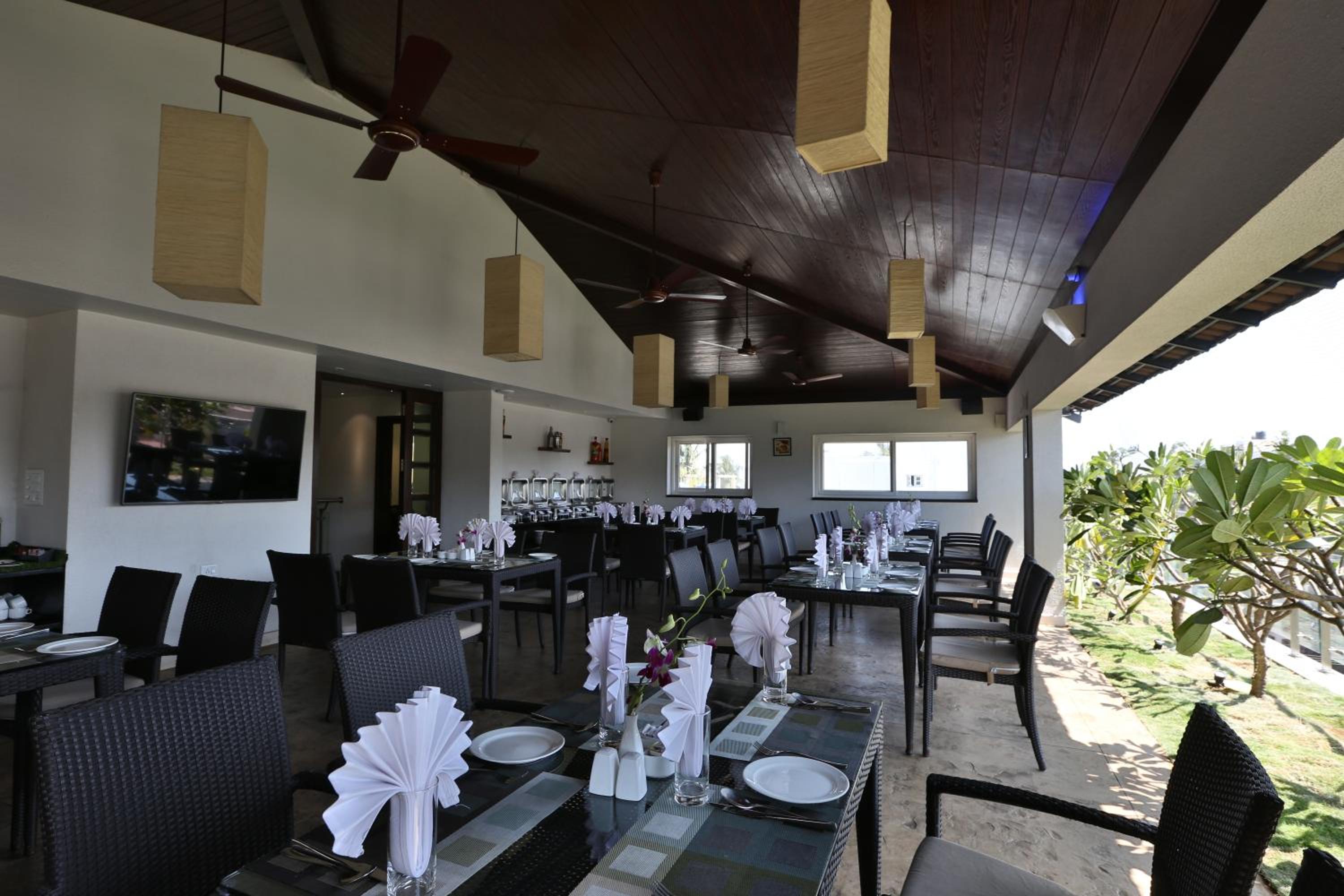 Experience the beauty of Bangalore at Temple Tree Hotel with a charming terrace overlooking lush gardens. Indulge in delicious meals at our on-site restaurant, creating a perfect dining experience for our guests.
