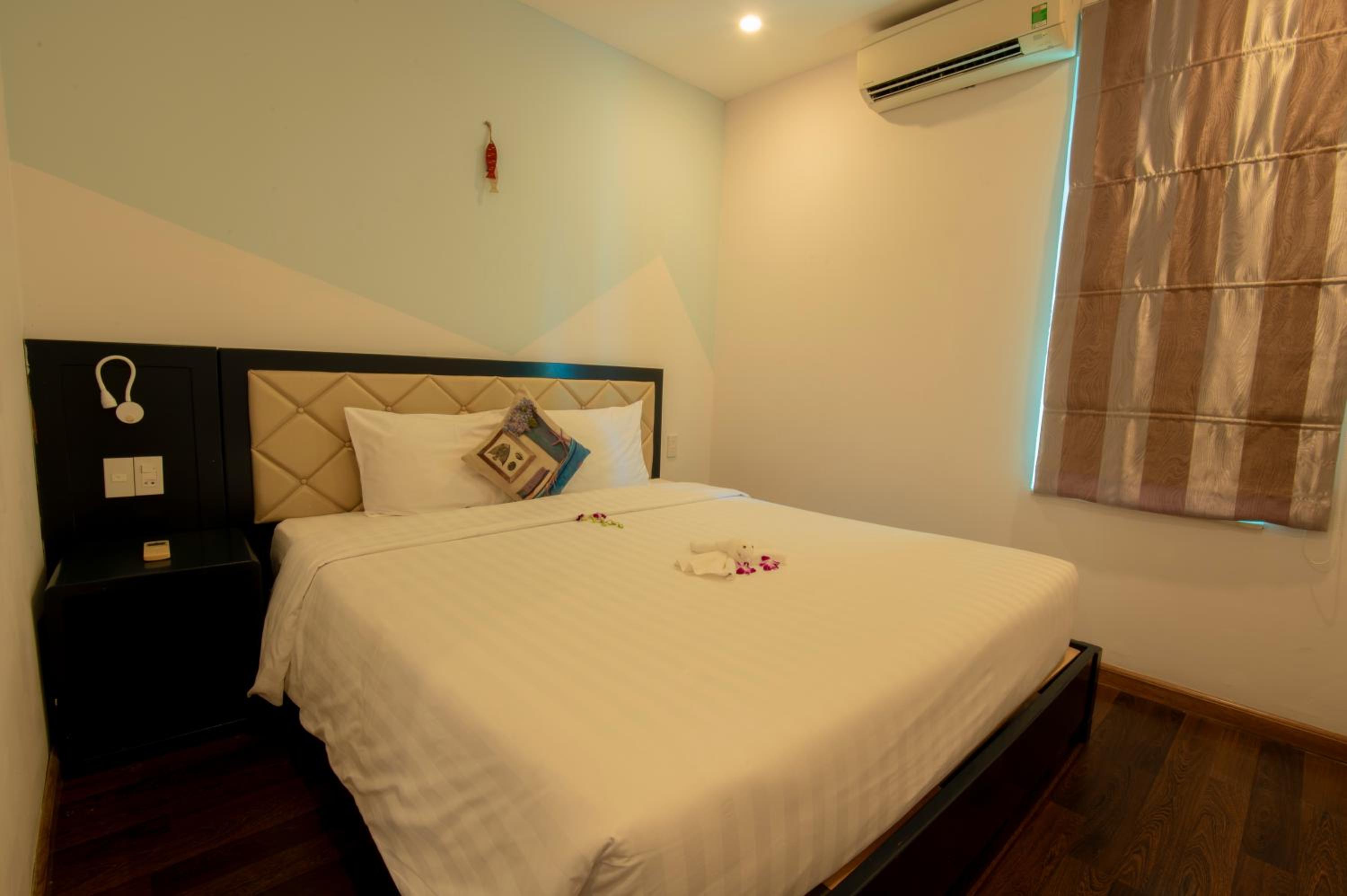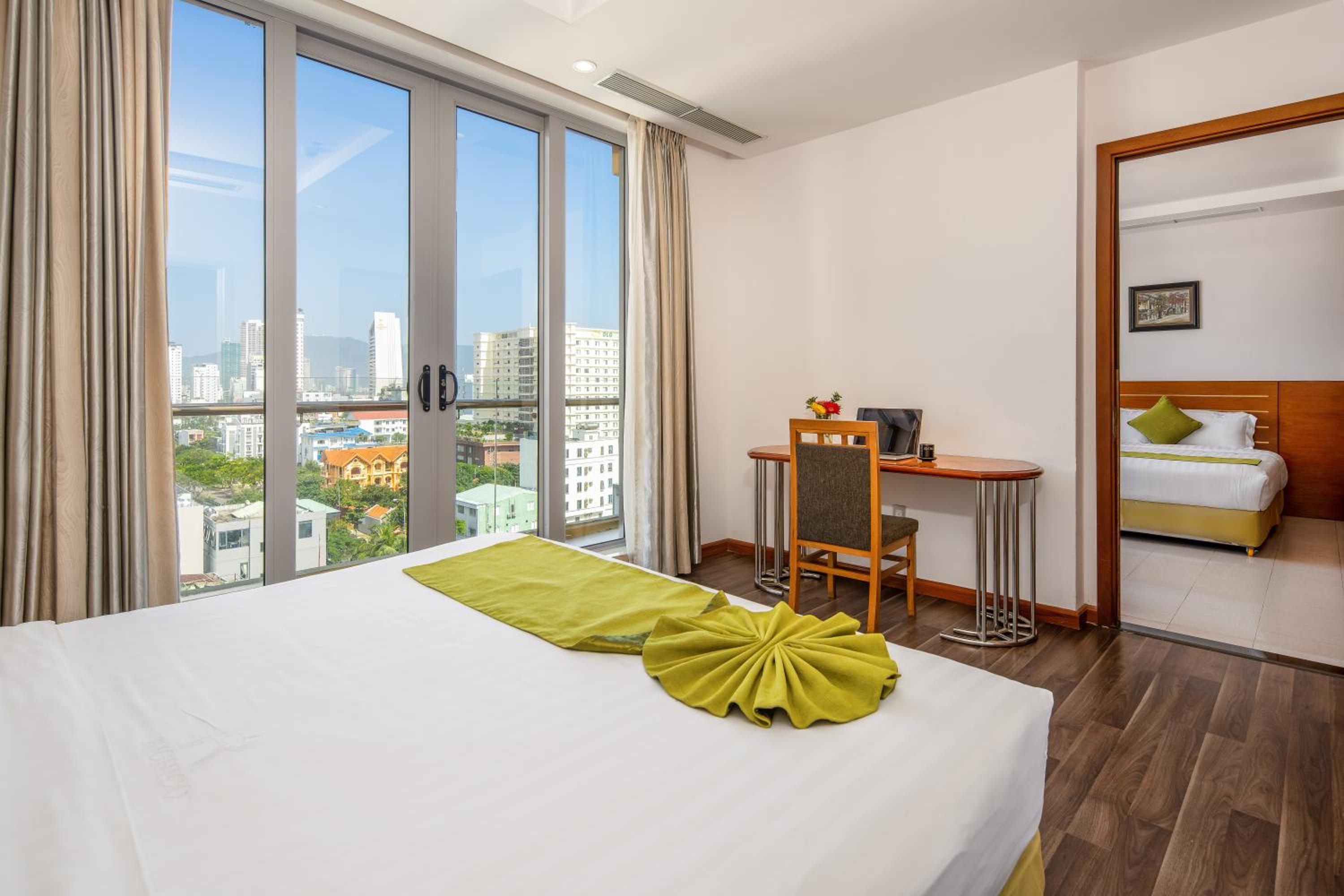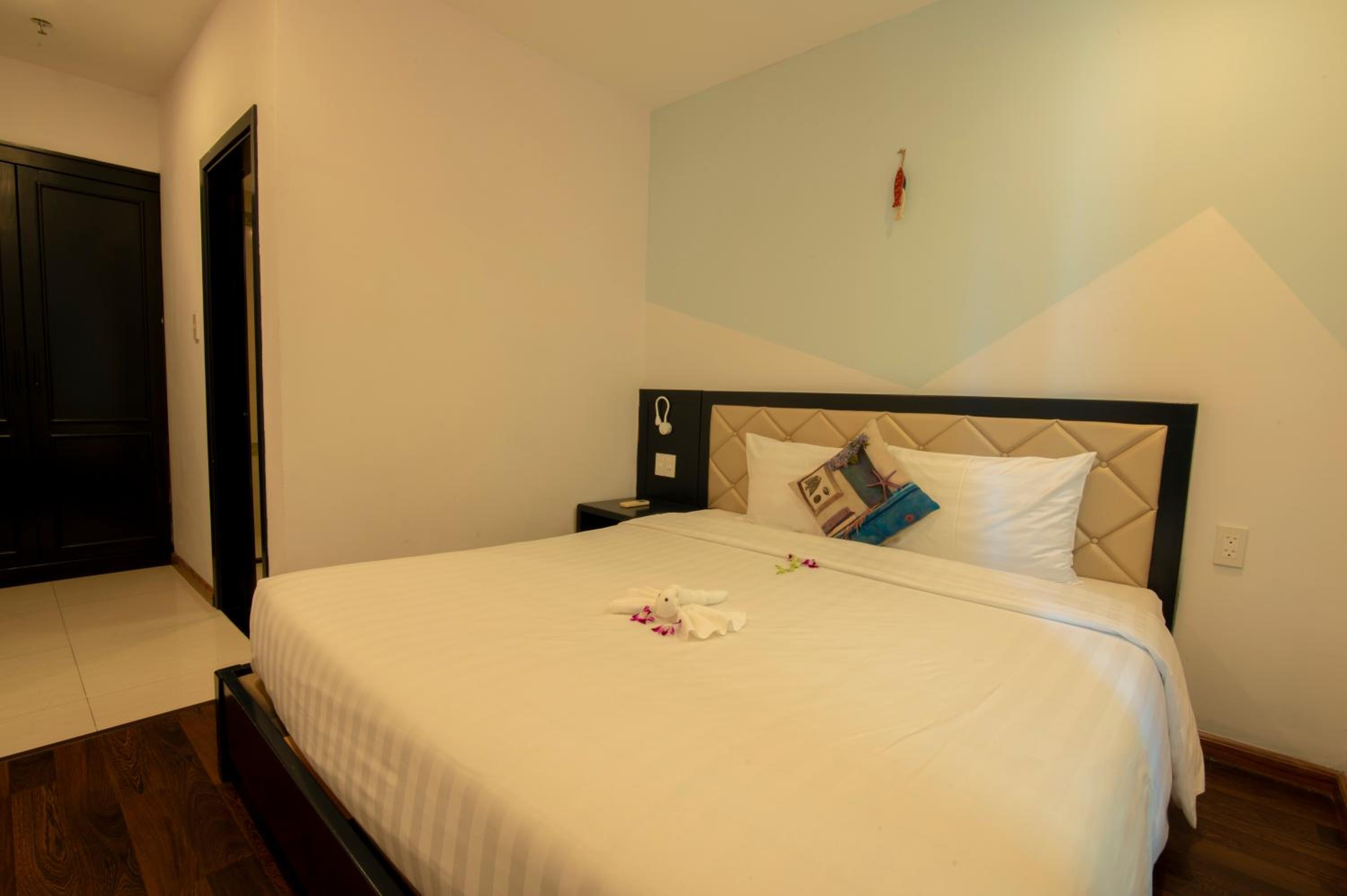 The room was quite spacious and well maintained. Room service made sure to clean everyday. The view from balcony was nice and it was windy. Its not sea view the beach is to the right from the balcony but that was expected from the pics we saw. The location is perfect right next to the Dnang beach. Beds were comfortable but please note as mentioned there are 3 beds and 2 bedrooms the third bed is in the living room itslef so it doesnt come with a door.
