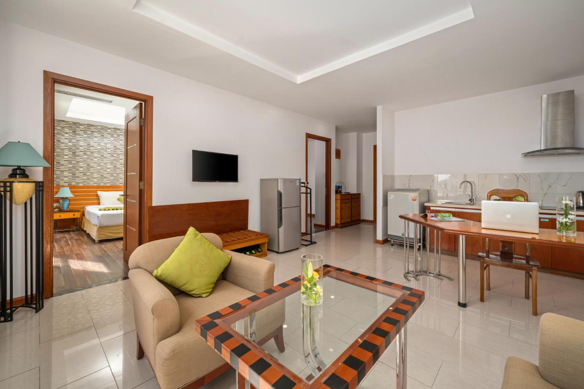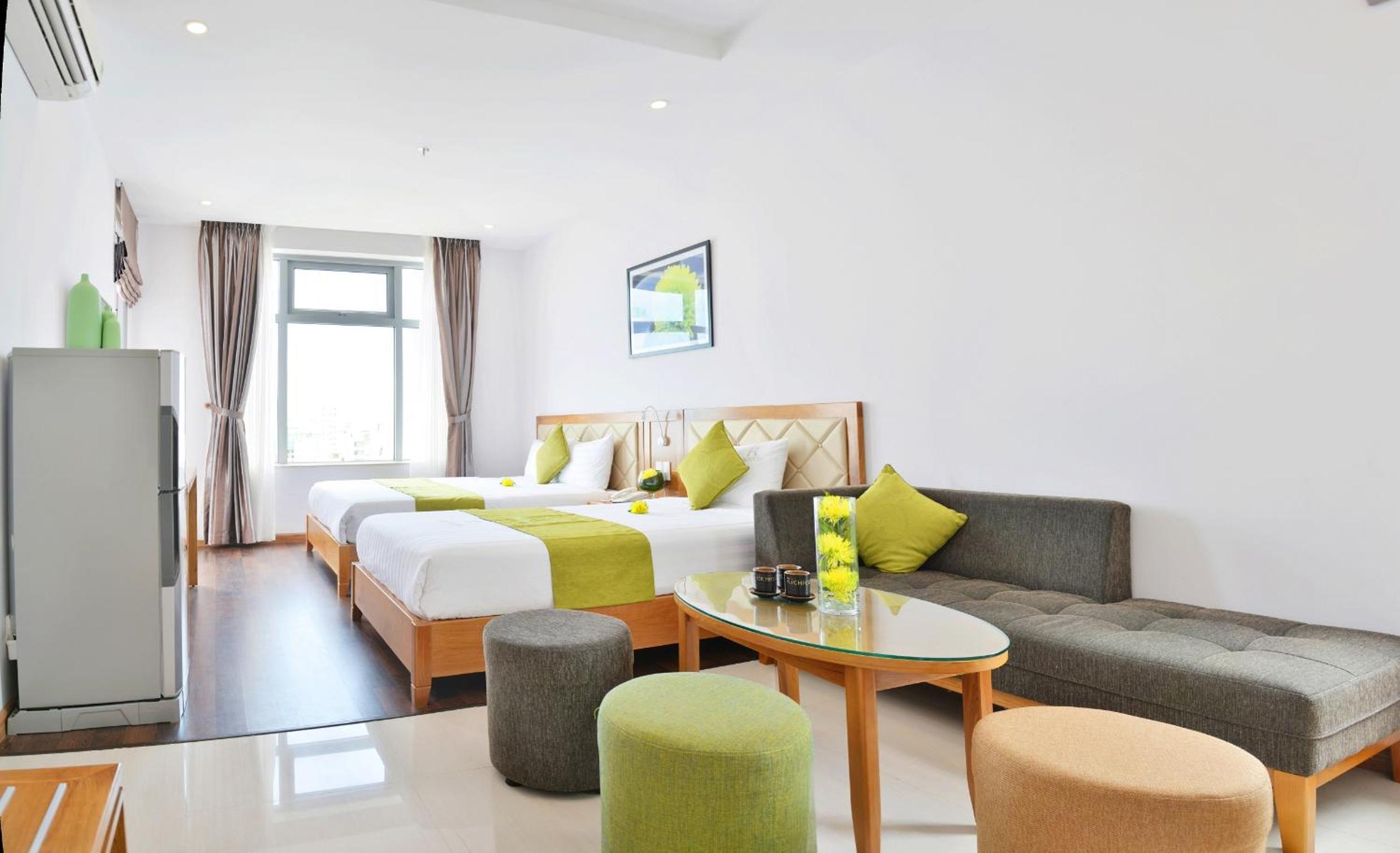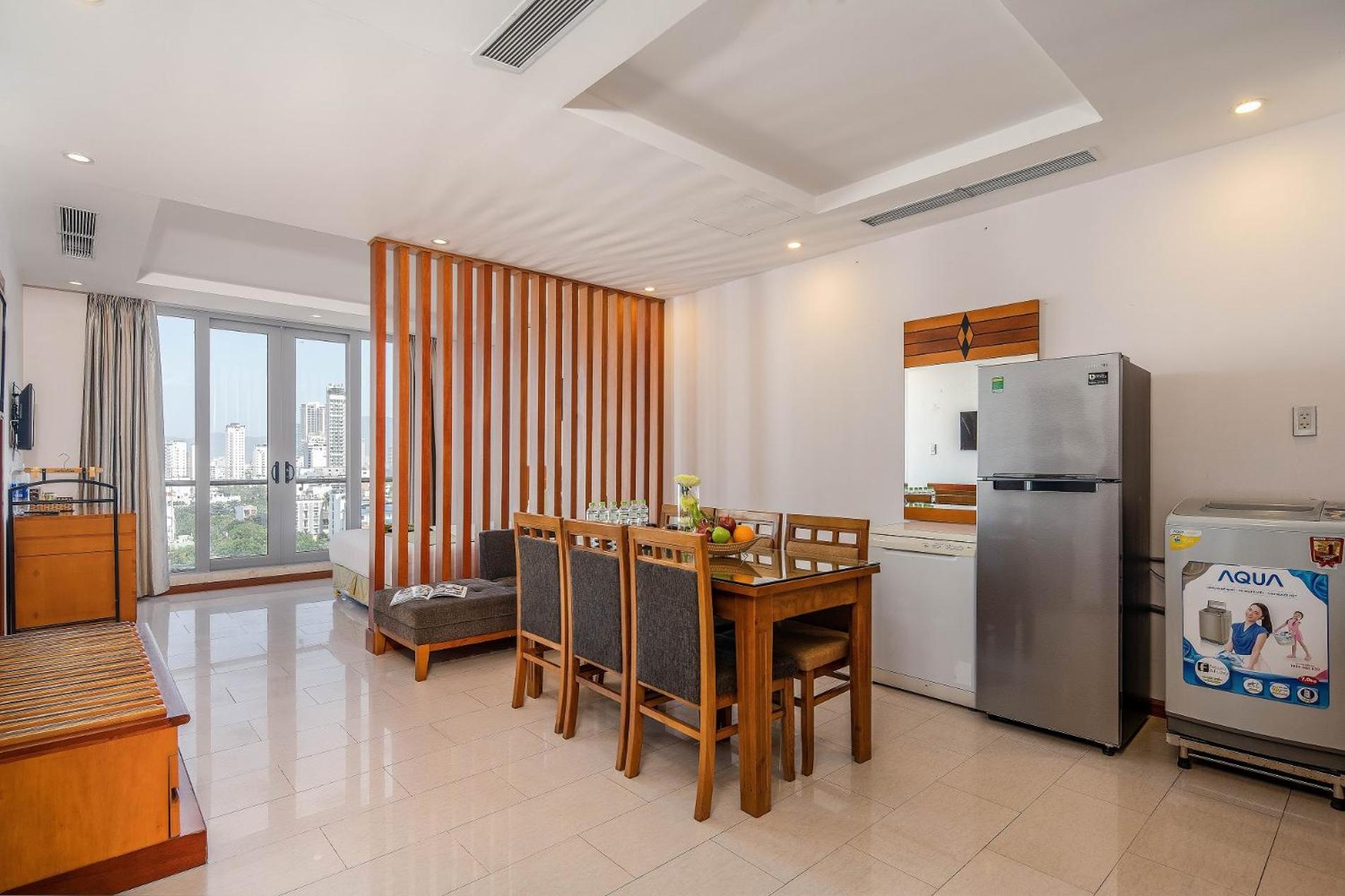 Richico Apartments And Hotel in Da Nang offers a luxurious self-catering experience with modern amenities. The apartments feature air conditioning, a minibar, and a seating area for your comfort. Enjoy sea and city views from the room, and make use of the refrigerator and electric kettle in the dining area.