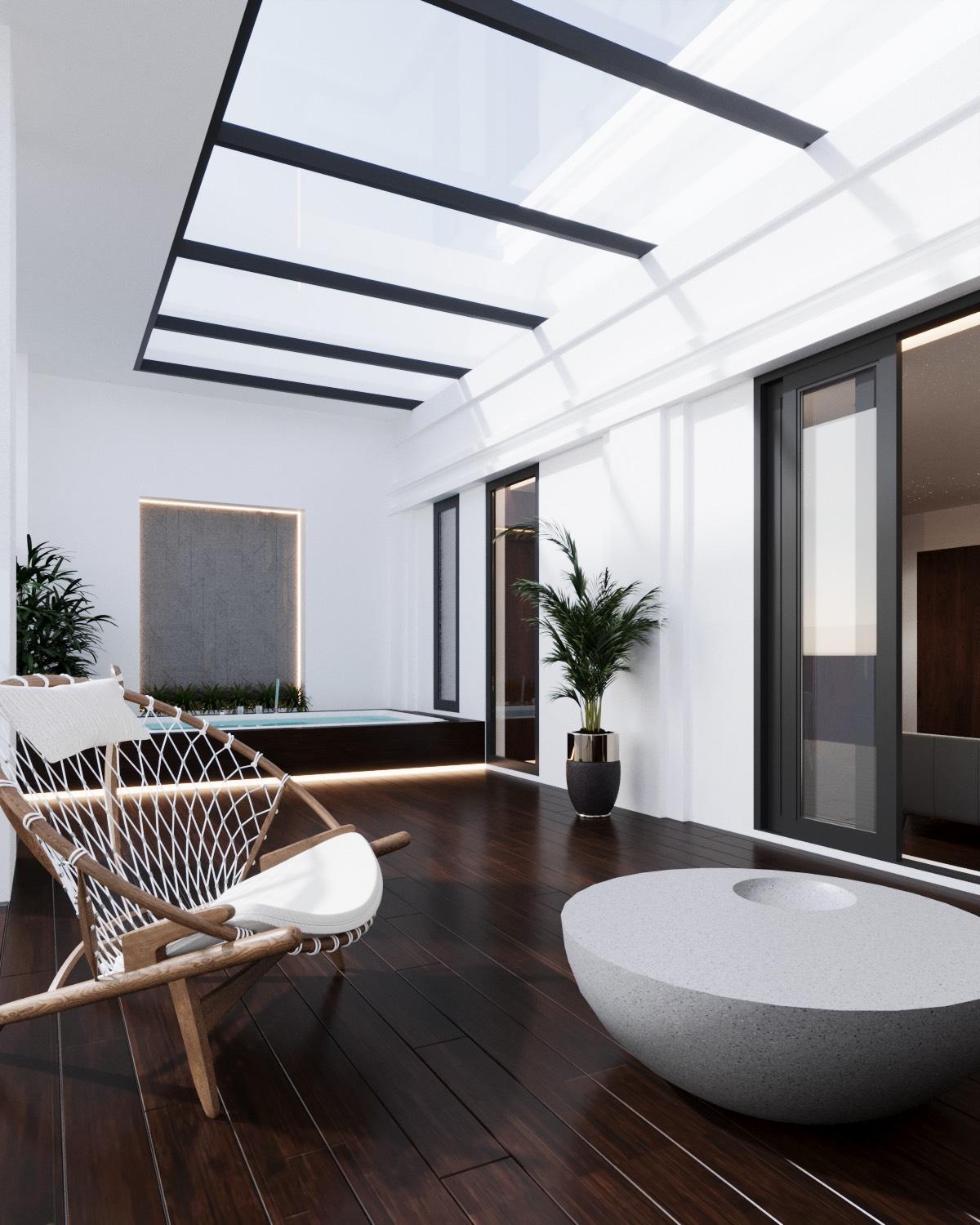 Đèn trong nhà tắm hơi thiếu ánh sáng. Cửa sổ nên được điều chỉnh để vừa an toàn vừa mở rộng ra đón gió biển tự nhiên sẽ tuyệt hơn.