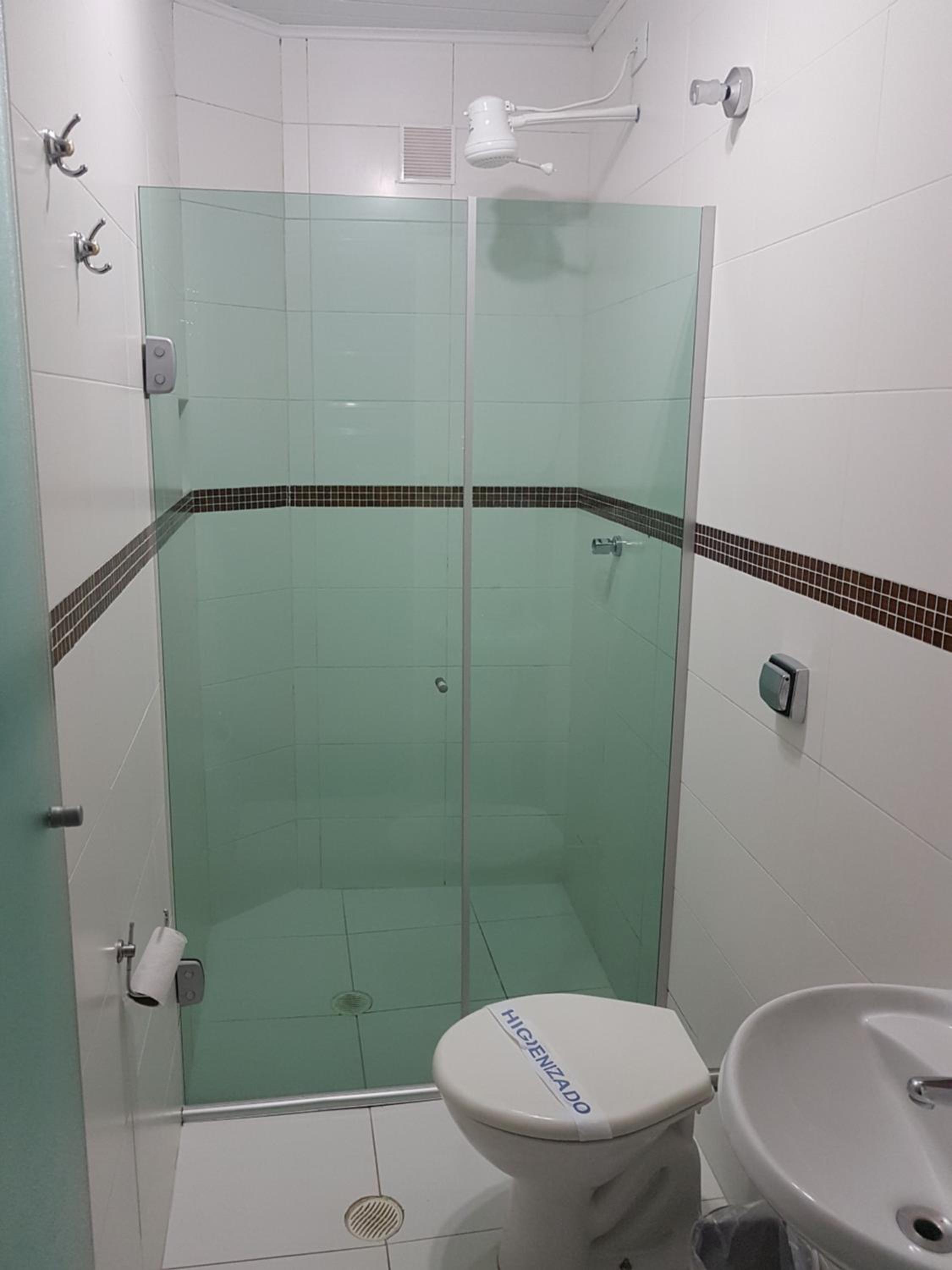 Porém assim que entramos no quarto percebemos que ele era menor do que esperamos, e o banheiro do quarto é muito pequeno, a ponto de o chuveiro estar praticamente em cima da privada. Os travesseiros também não tem uma qualidade muito boa, estavam descascando.
