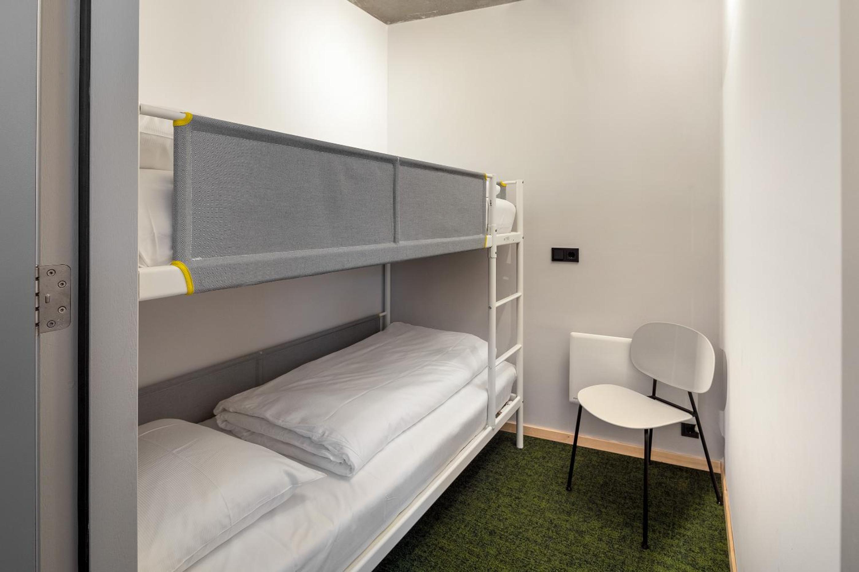 De kamers zijn klein en sober. Je kunt niet om je bed lopen. Je moet erin springen.