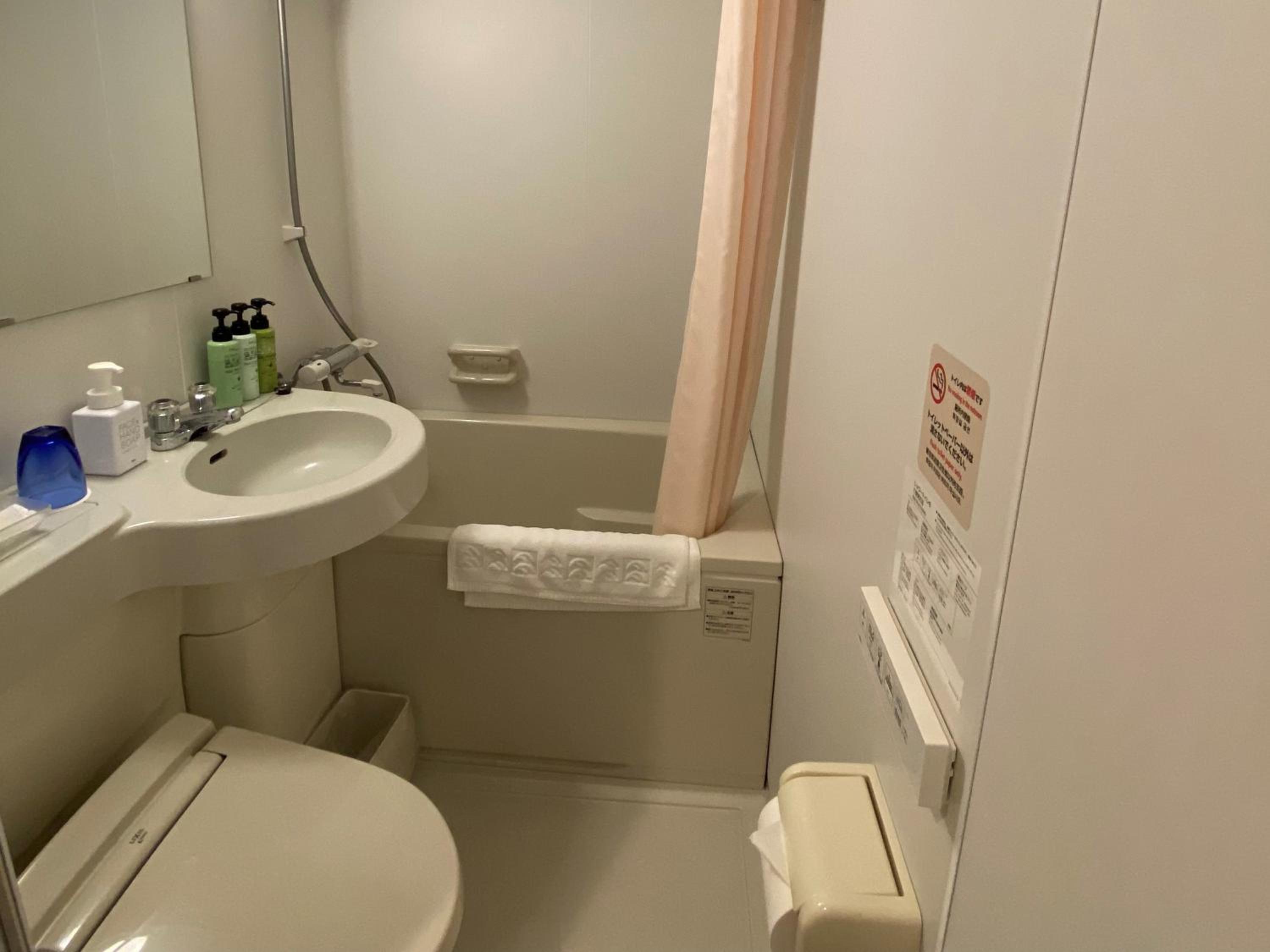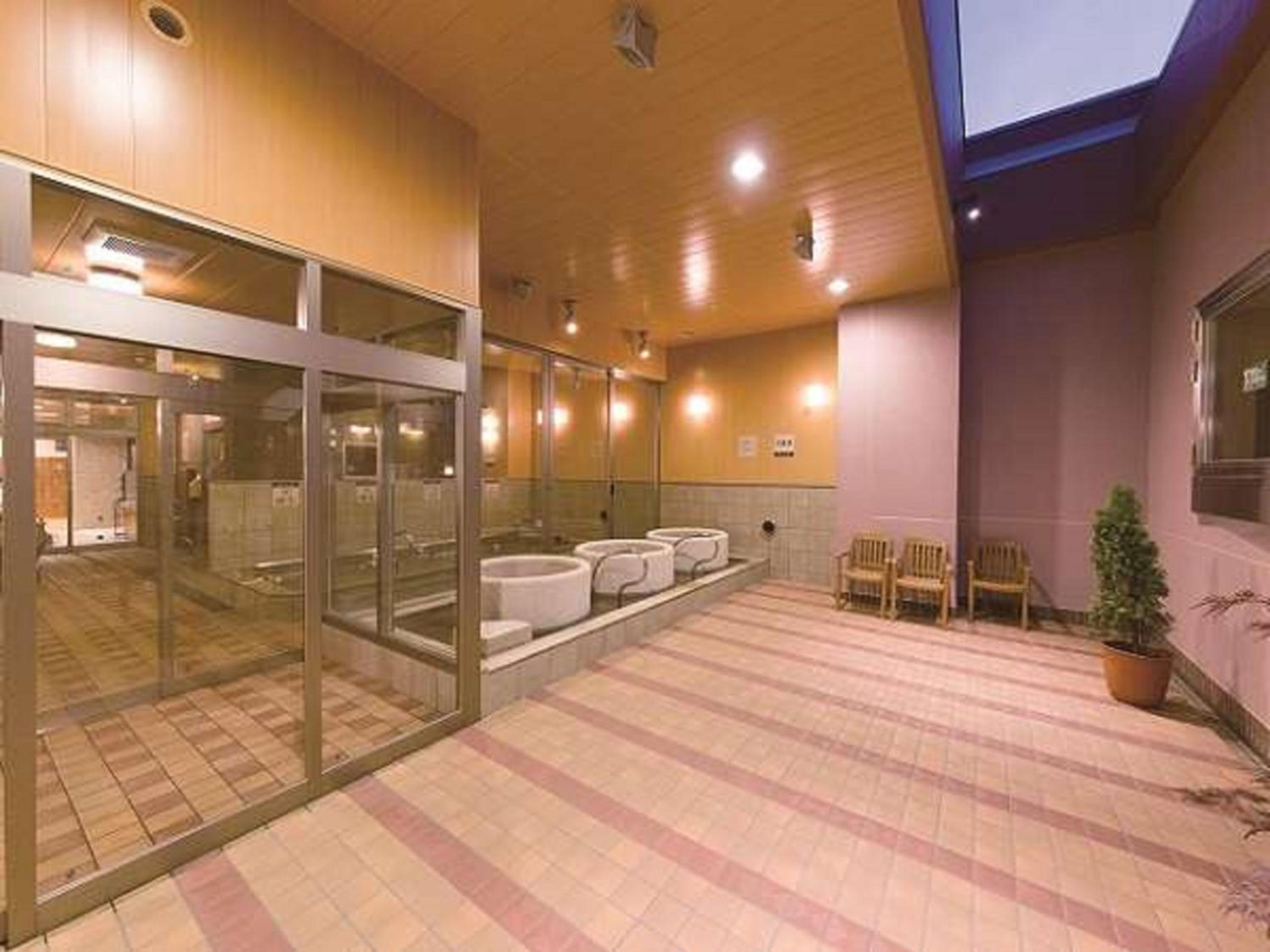 飯店内有溫泉大浴場,住客每日還有一枚代幣可換飲料,晚上9點前可以試喝8種清酒,大廳有咖啡,飲料,玉米濃湯可以免費喝,最特別的是如果當天決定不打掃,每人再送2枚代幣,所以每天都有喝不完的飲料,飯店內有停車場,1日1000元,但不會限定停車的時間,離車站也很近