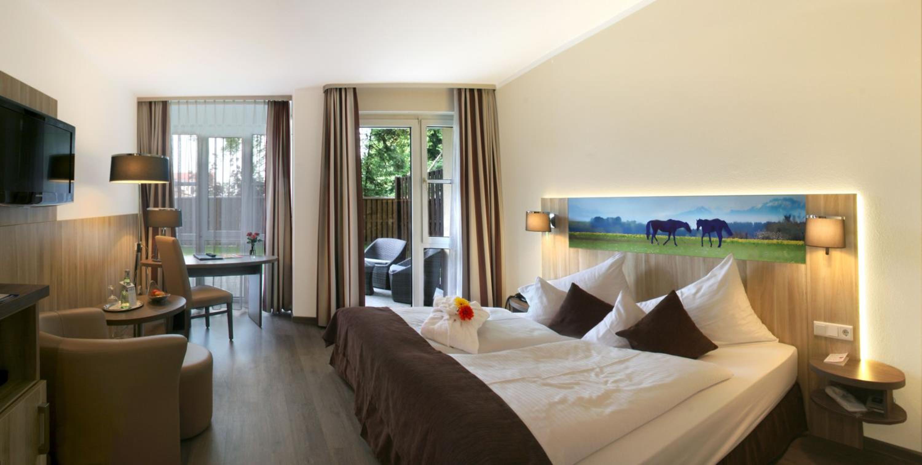 Convenient Location: Situated just 35 km from Munich's city centre and a short drive from Munich Airport, the hotel offers easy access to transportation with free WiFi throughout.