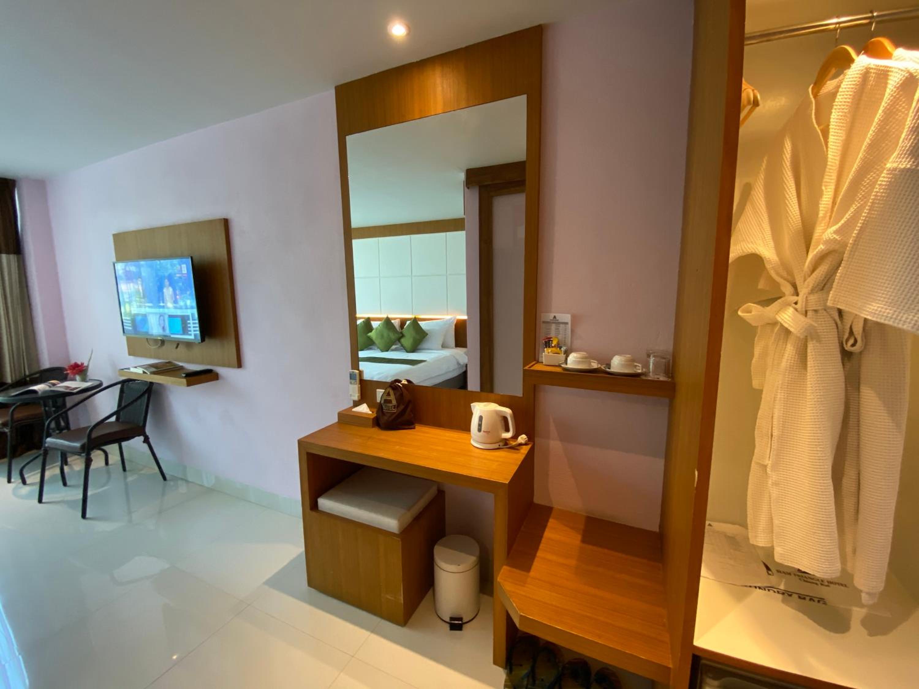 We like the free bike rentals service. This hotel is the same business as Siam Triangle Hotel on the opposite side, so we could use the pool and fitness room there. However, the pool and fitness room are in bad conditions (old and not clean). Staff were nice and helpful.