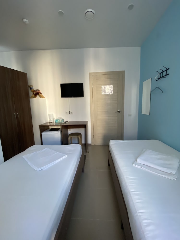 Большой минус отсутствие парковки рядом. Номер без окна предполагает кондиционер, но, если его включить, то просыпаются отдыхающие в соседних номерах, поэтому предлагается спать с открытой дверью - "всё равно ночью никто не ходит".