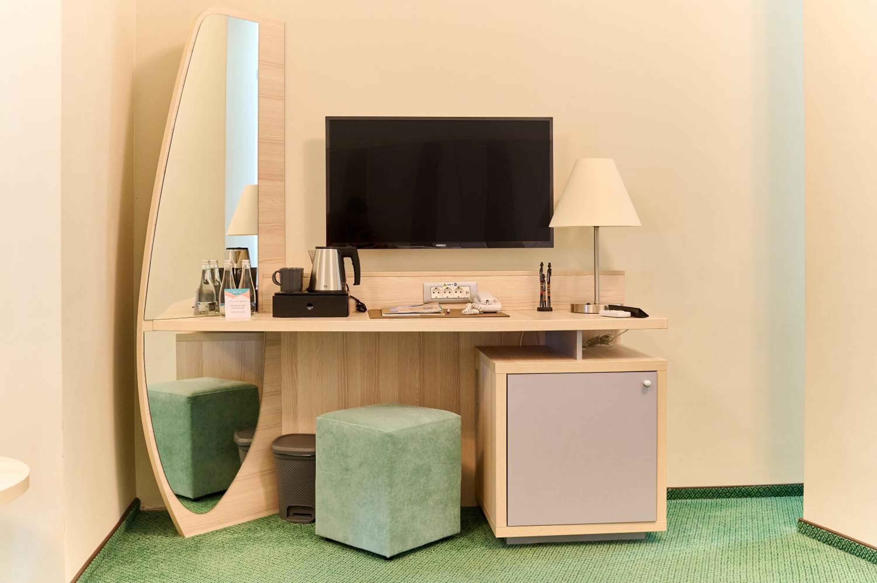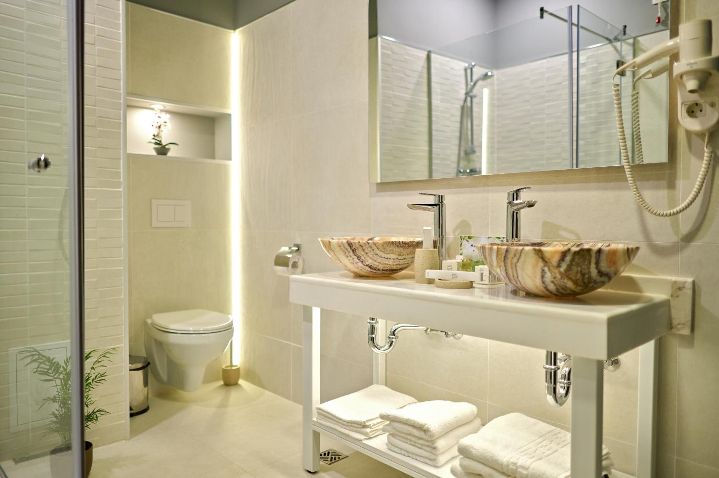 Indulge in elegantly furnished air-conditioned rooms at Hotel Malibu, each equipped with a private bathroom featuring bathrobes, slippers, and toiletries. Unwind with on-site wellness facilities for the ultimate relaxation experience.