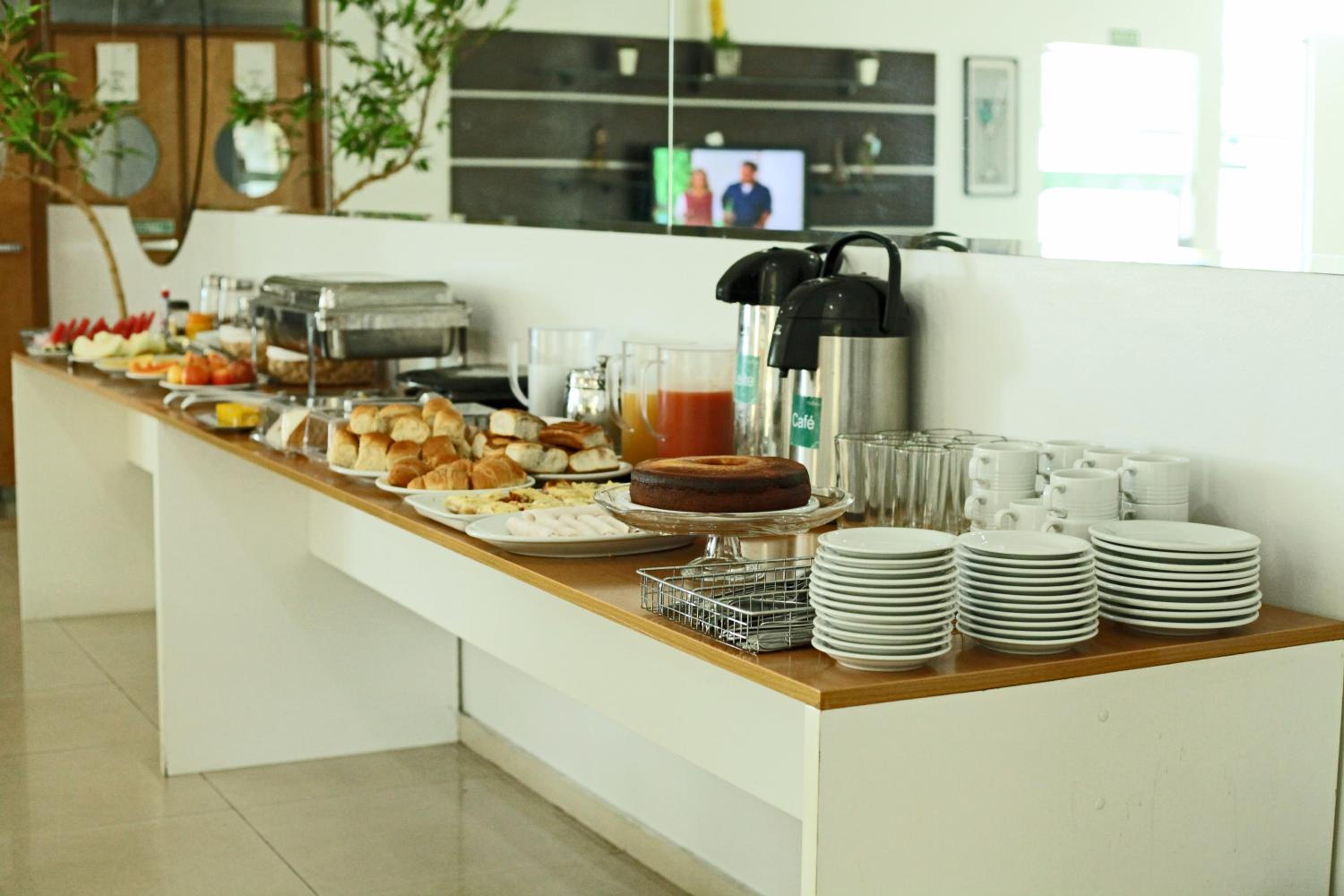 Variedades de opões no café da manhã, poderiam incluir mais itens.
