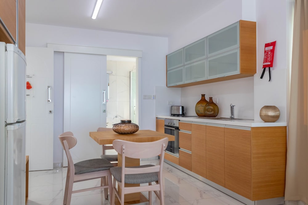 We really enjoyed our stay at this beautiful hotel. Very clean, wonderful apartment, well equipped. The washing machine is one for everyone, but it is located in the building and it is free. Beautiful garden, very clean. Clean, warm pool. Special thanks to the host, very friendly and sociable.