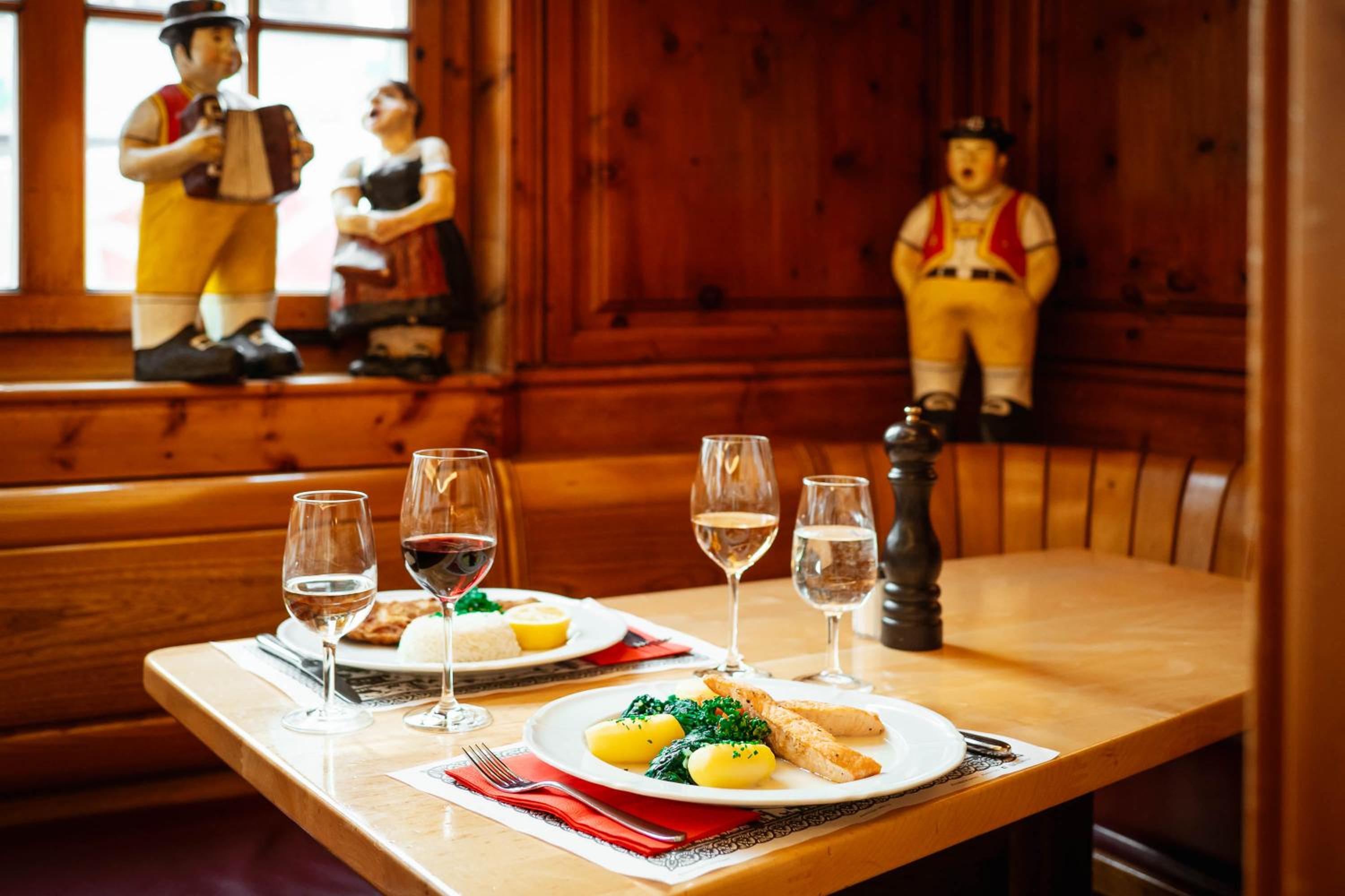 Indulge in Swiss culinary traditions at the on-site "Swiss Chuchi" restaurant. From the famous "Adler Cheese Fondue" to crispy "Rösti" potato pancakes, experience a blend of classic and modern Swiss cuisine. Don't miss the outdoor seating in the summer.