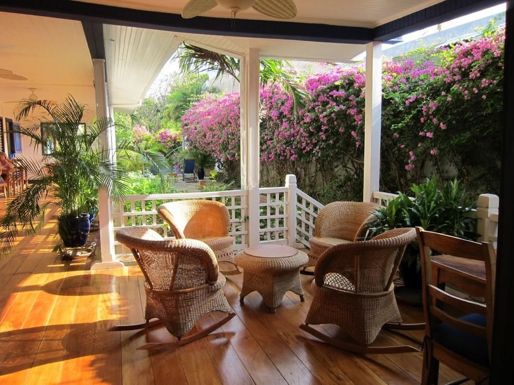 Everything about our stay was perfect! We arrived early in the morning before check in time and they allowed us to store our luggage. Once the room was ready we checked in very easily. The hotel staff is very friendly, helpful, and knowledgeable. This is a small hotel with only 7 rooms. It includes a full, served breakfast every morning and it was so good! Ours was fruit, muffins, coffee, tea, juice, and a different entree each day. The grounds are very nice and tranquil with pretty flowers and a nice pool. The pool has towels so no need to pack one or use the one from your room. The honor bar was very handy when we didn't want to go out to the stores in town. There is a little store attached with cute gifts to bring home. The location is perfect! Just off the beach on the quieter end of town so you can relax if you want or just take a quick walk and be right in the thick of the party. There is a watchman at night, so we always felt perfectly safe. I would and will stay here again. They are wonderful!