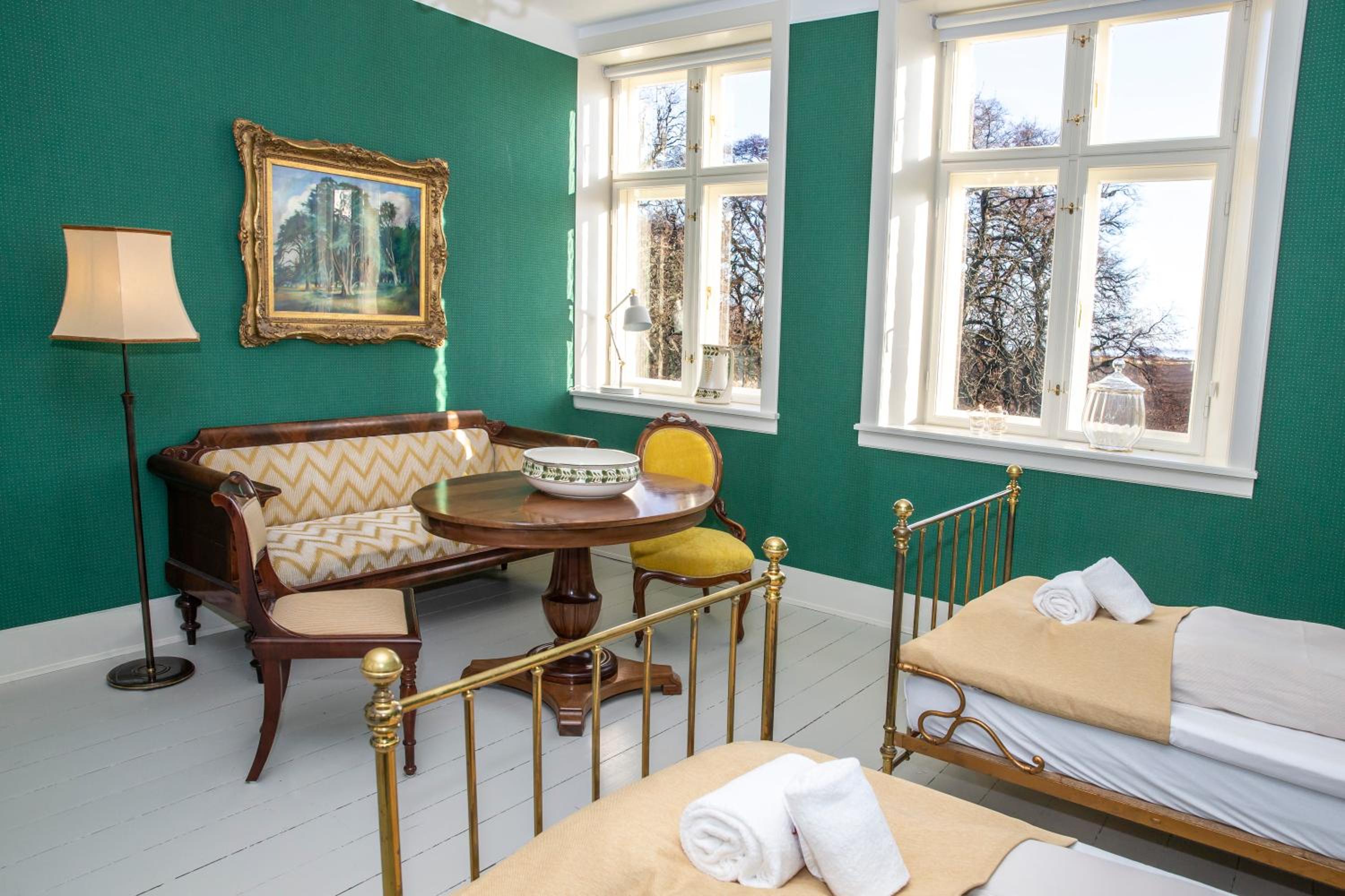 Nestled in Fuglsang Park, Fuglsang Herregaard Hotel provides a unique stay in an original Manor house dating back to 1869. The property boasts 13 charming rooms in the main building and 6 more in the annex, each offering a cozy seating area for relaxation.