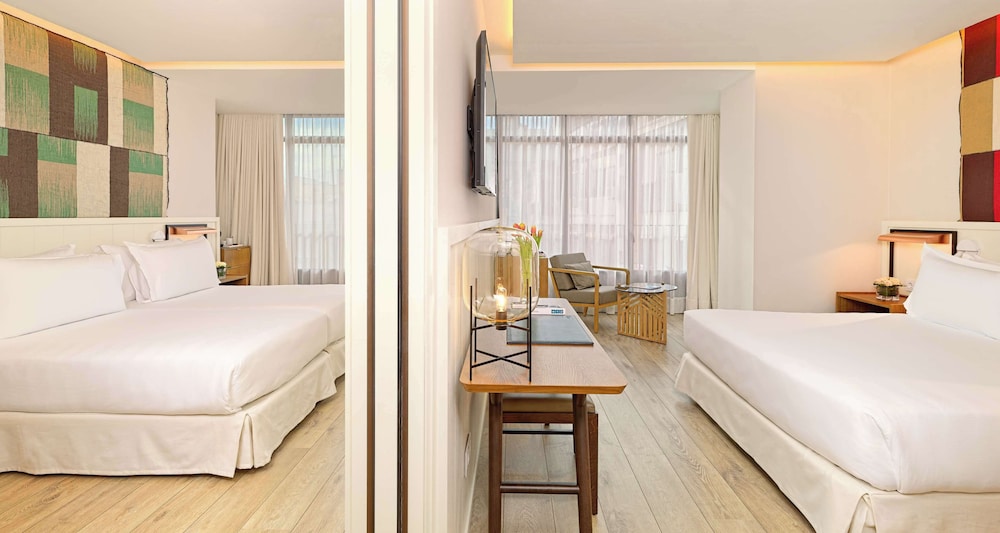 We just left the hotel after a 4 night stay with our family. We booked a suite and a double room for us and our adult children and it worked perfectly. The hotel was in a fabulous location with an easy walk to Las Ramblas and Passeig de Gràcia. There was also a metro station almost right across the street and a number of restaurants as well. All of the employees at the hotel were very nice and went over and above. We especially loved Marcela and Anas at the front desk and Miguel at the rooftop bar.