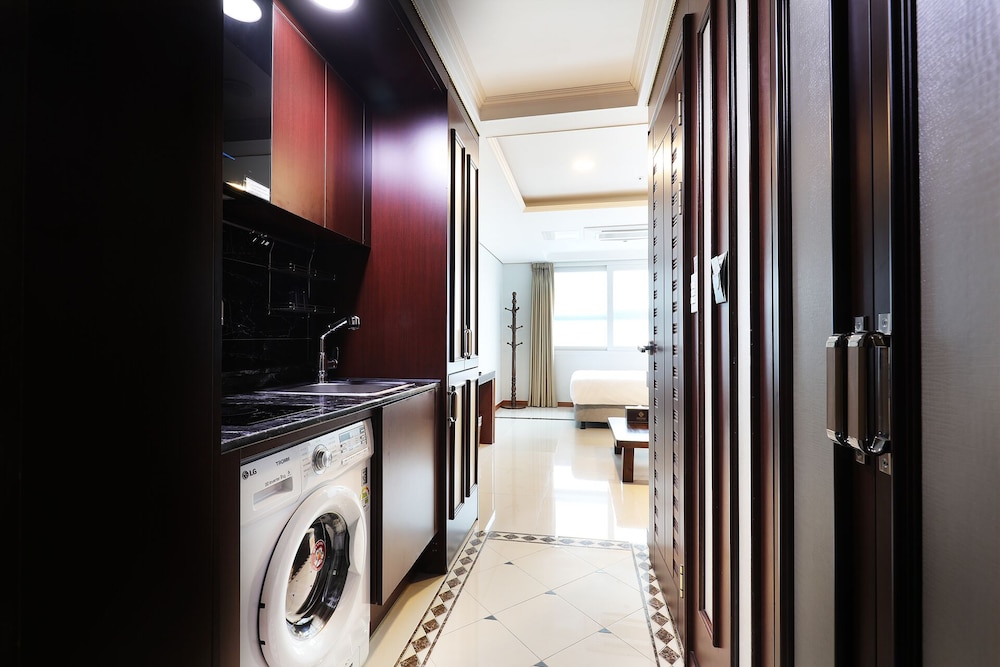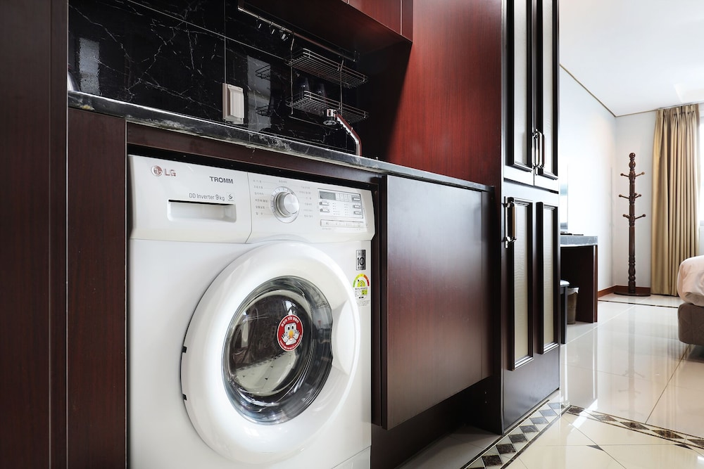 金浦空港に遅く到着するなら、すごくおすすめです。周囲は飲み屋さんとか十分にあります。お部屋はキッチン付き、洗濯機付きでした。古いですがきれいにしてあって、初日とか、最後の日とか、空港に近くて、変に苦労することないです。