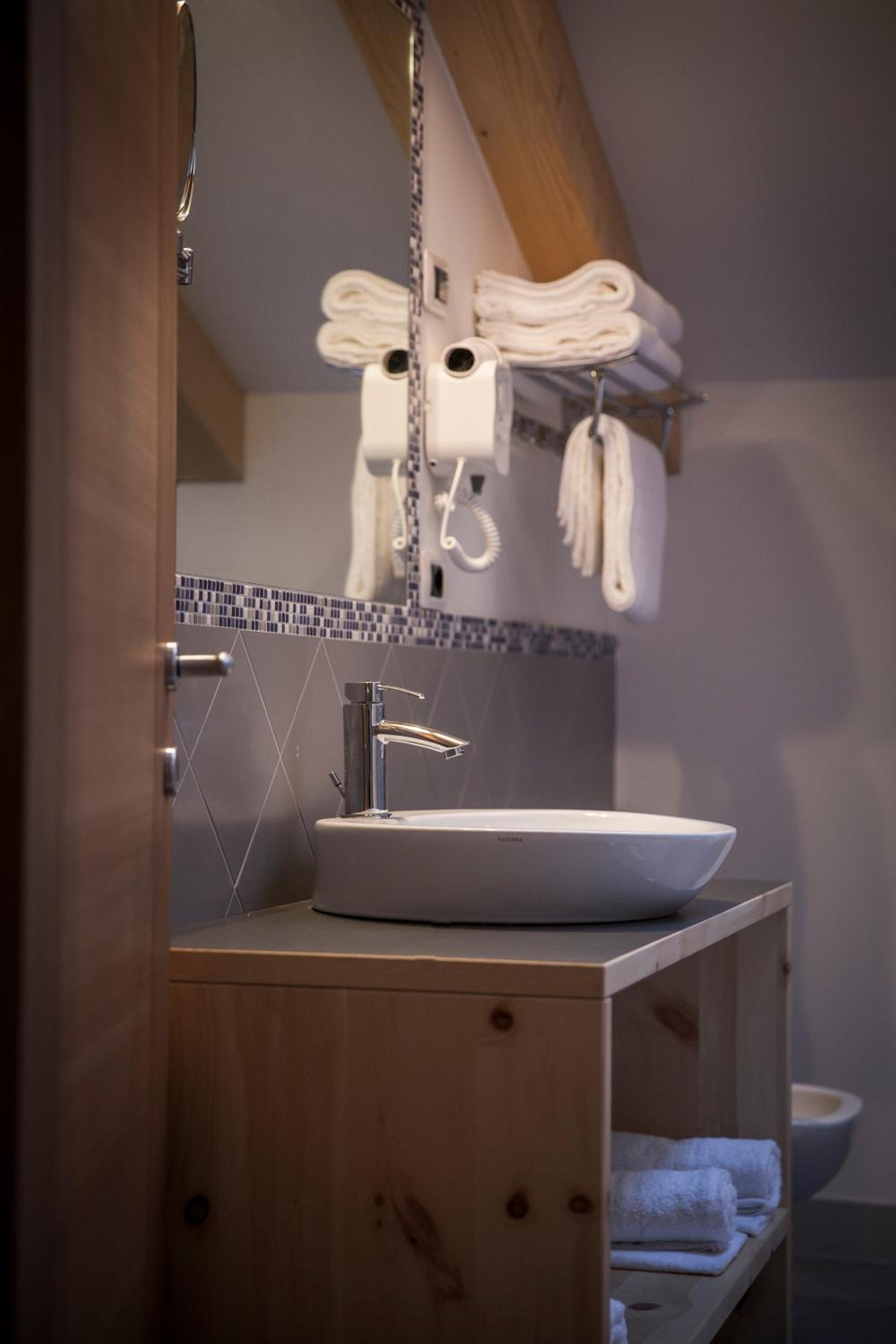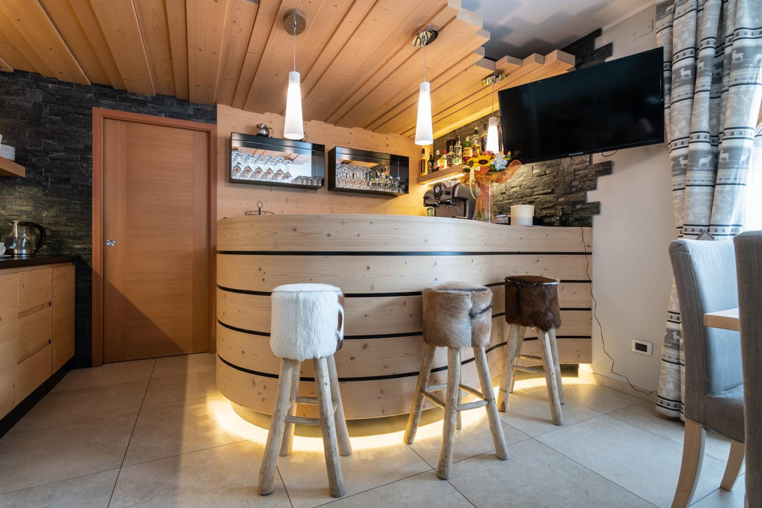 The hotel is fantastic. The location is very good (15 minutes walk to the center, 3 minutes to the slopes by hotel bus). There is a ski room where you can keep you skis and warm the ski shoes. The hotel bus takes you to the slopes anytime you want (within set times). Breakfast is very good. The owners are very nice and helpful (we were collected and taken back to the bus stop). Our apartment (no 4) was gorgeous.