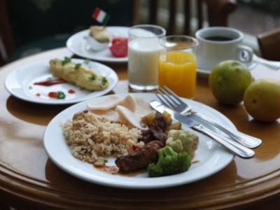 The quality of the food at breakfast was poor.