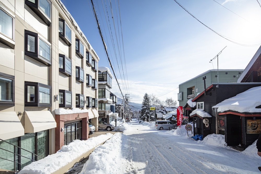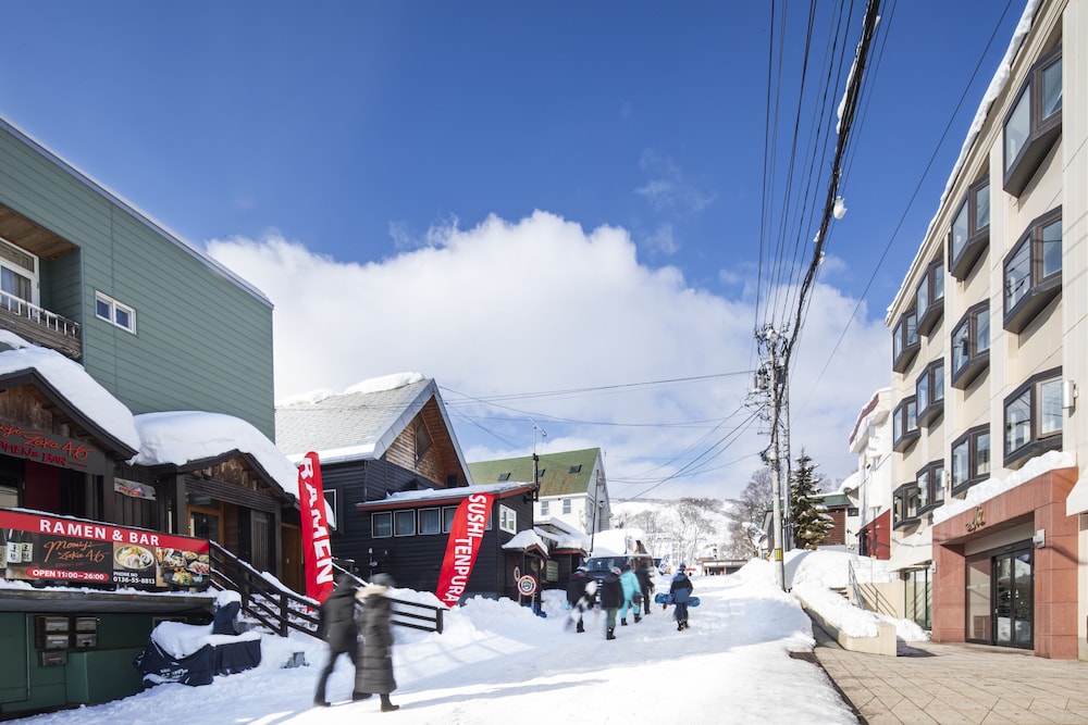 Stayed here twice now and highly recommend this hotel. Clean good-sized rooms for relatively good prices (not cheap, but reasonable compared to other Hirafu hotels of the same spec), lockable ski racks and kit storage lockers, great buffet breakfast, and free transfer service to the bus station on arrival and departure. Only approx 10 min walk from the nearest chairlift (in ski boots), and close to the main restaurants and bars in Hirafu. Rhythm ski rental shop (biggest rental shop in town) is a 5 min walk. One to watch - the road outside can get VERY icy and is on a hill, so cheap snow spikes come in useful.