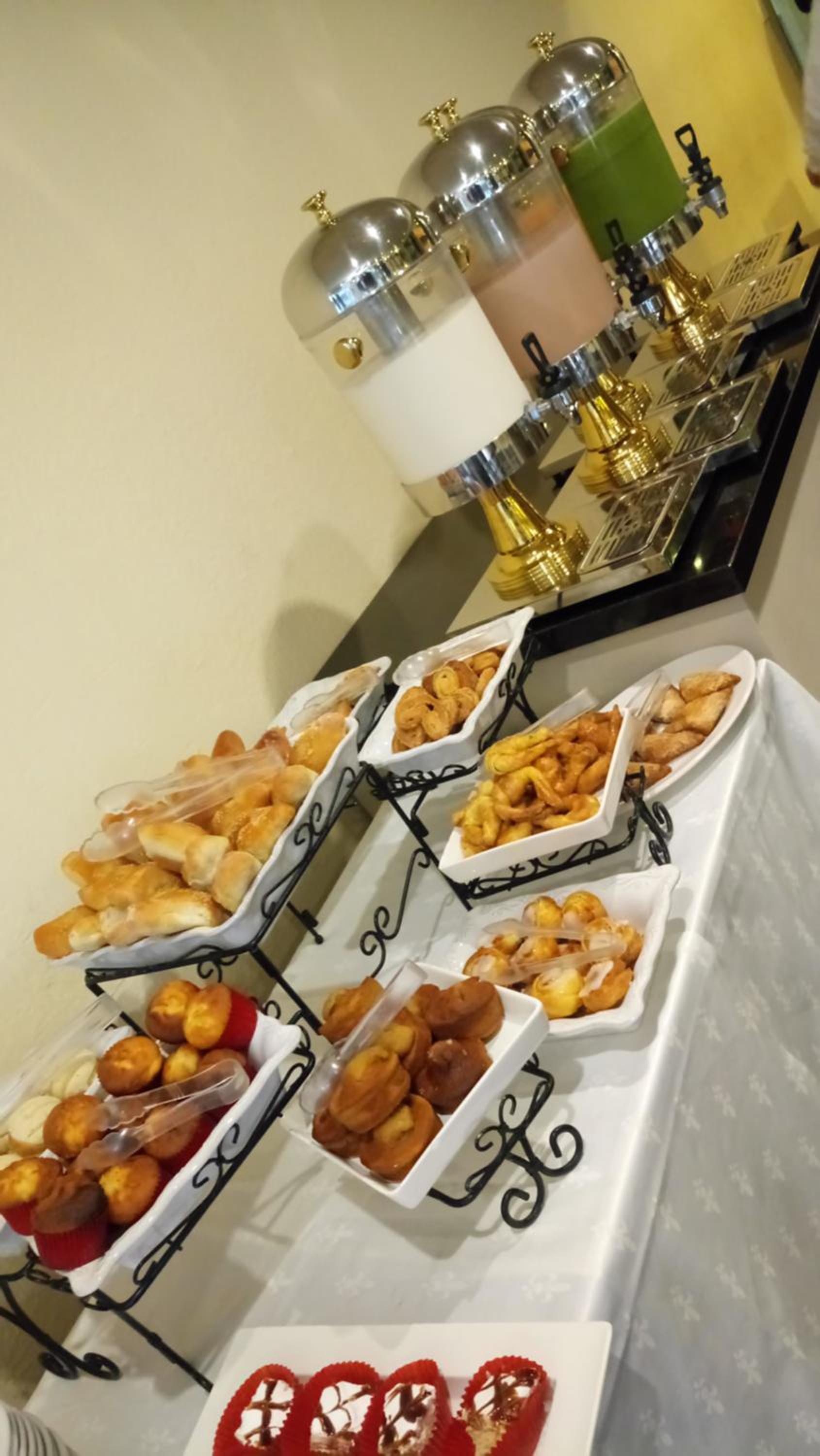 El desayuno buffet le falta sazon al huevo y las tortillas frías, pero todo lo demás muy cómodo todo.