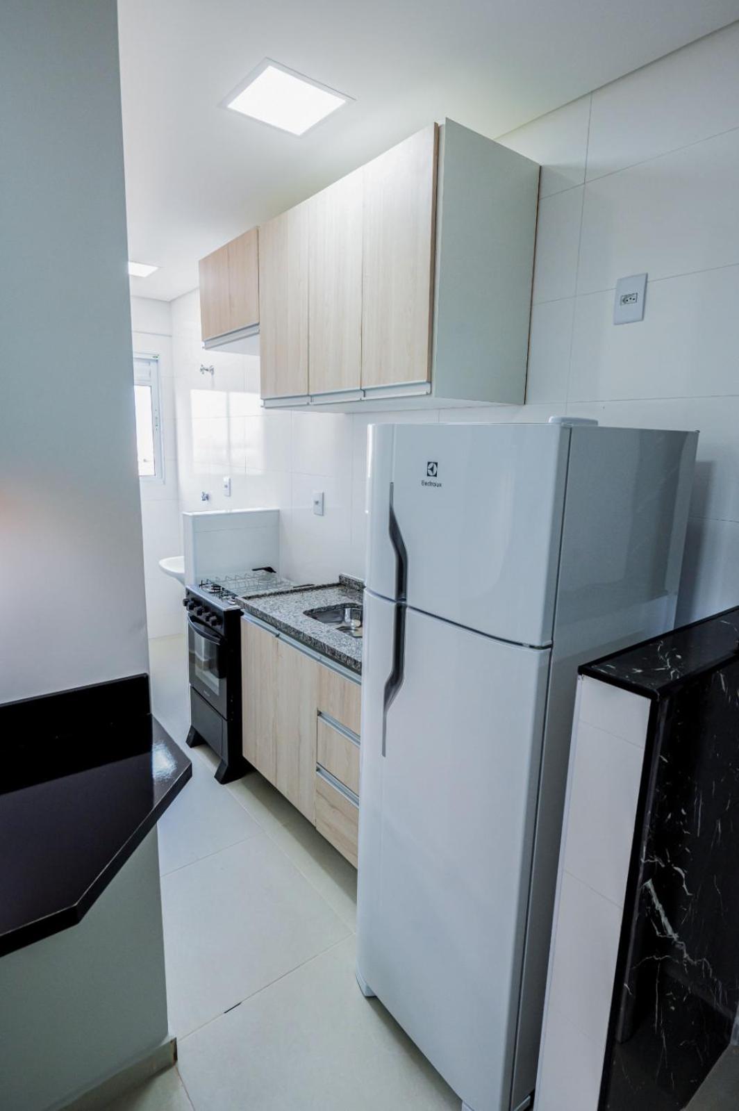 Cozinha tem 3 gavetas com nada, pra uma pegada apart hotel falta coisa pra quem faz questao. O banheiro tem uma ducha muito forte que nao condiz com a vazao da agua, sendo assim, é facil molhar o chao do lado de fora