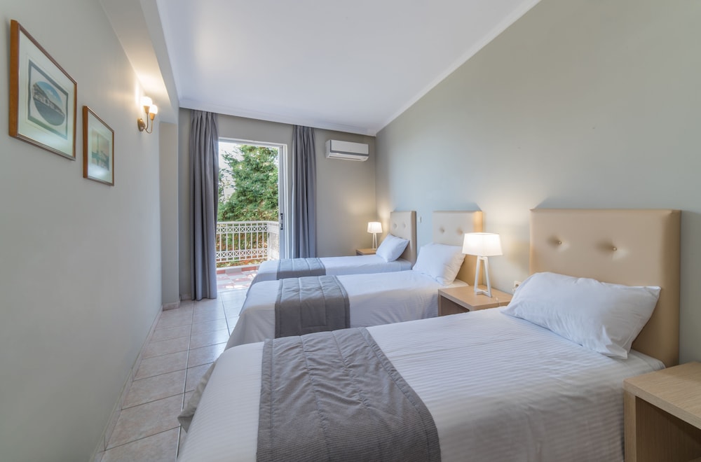 This hotel is okay. It has a good location right on the small beach & close to argassi centre.