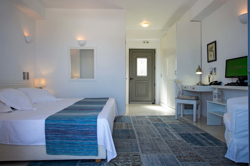 Infinity pool was excellent with beautiful views of the island and distant sea views. Breakfast was bountiful and displayed with such care. Aris was an amazing host. Definitely need a car to get to Naoussa and other parts of the island.