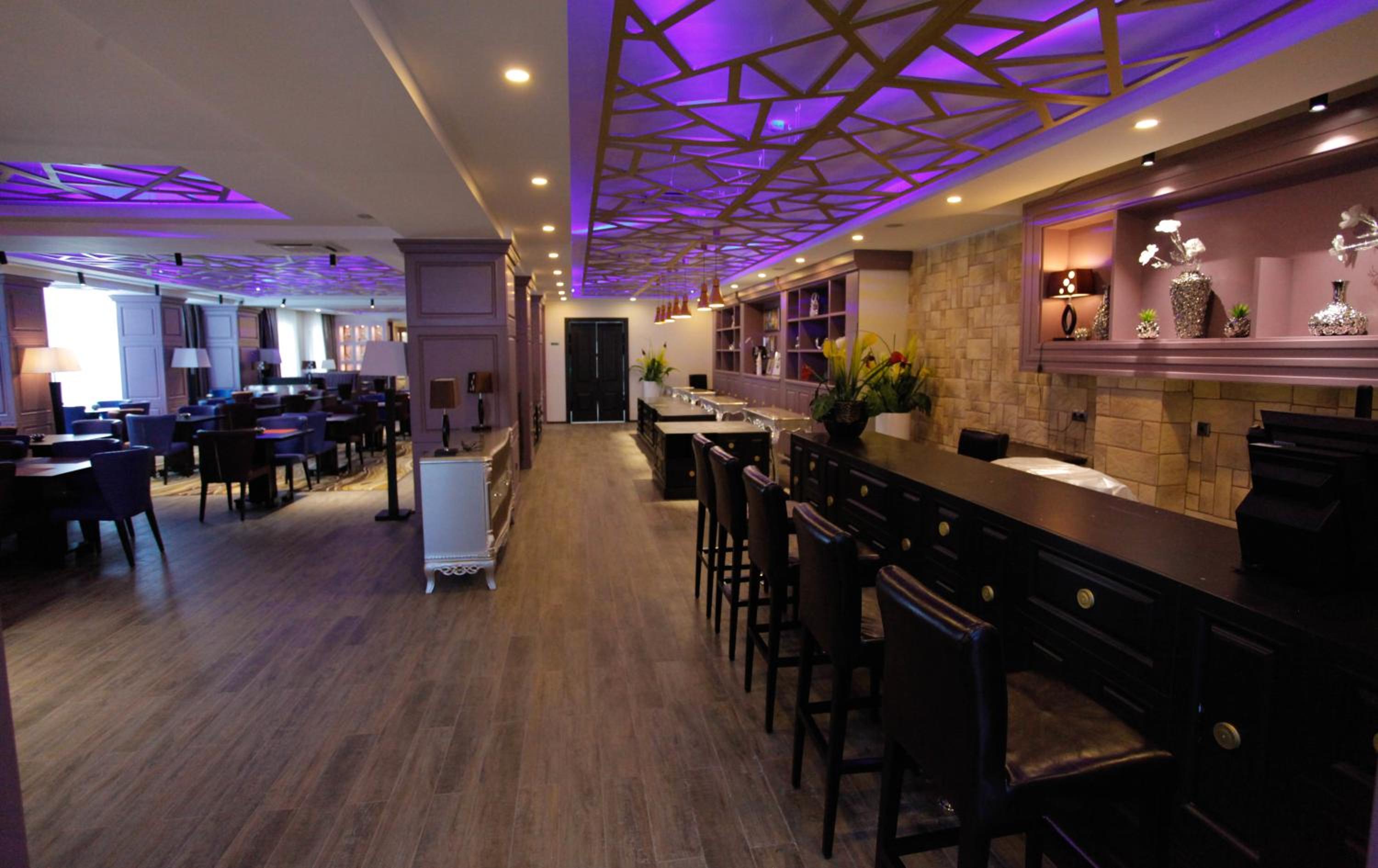 Indulge in European cuisine at the hotel's restaurant or enjoy the convenience of room service. Start your day right with breakfast in your room upon request. The on-site bar is perfect for a relaxing evening.
