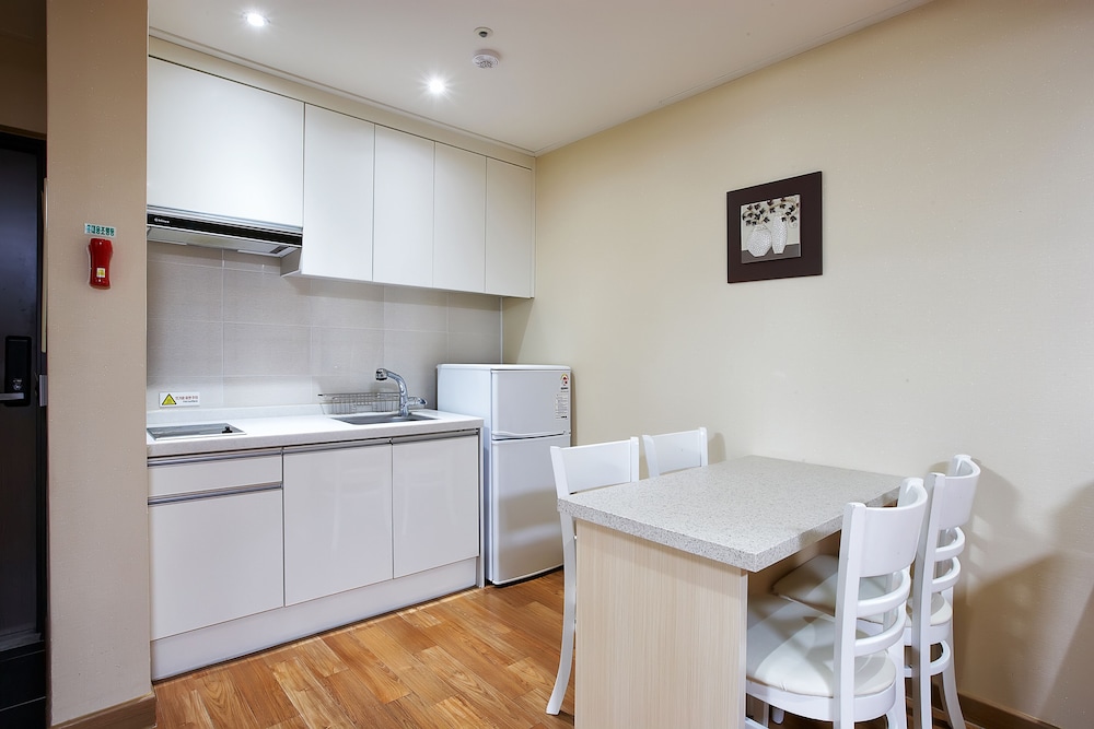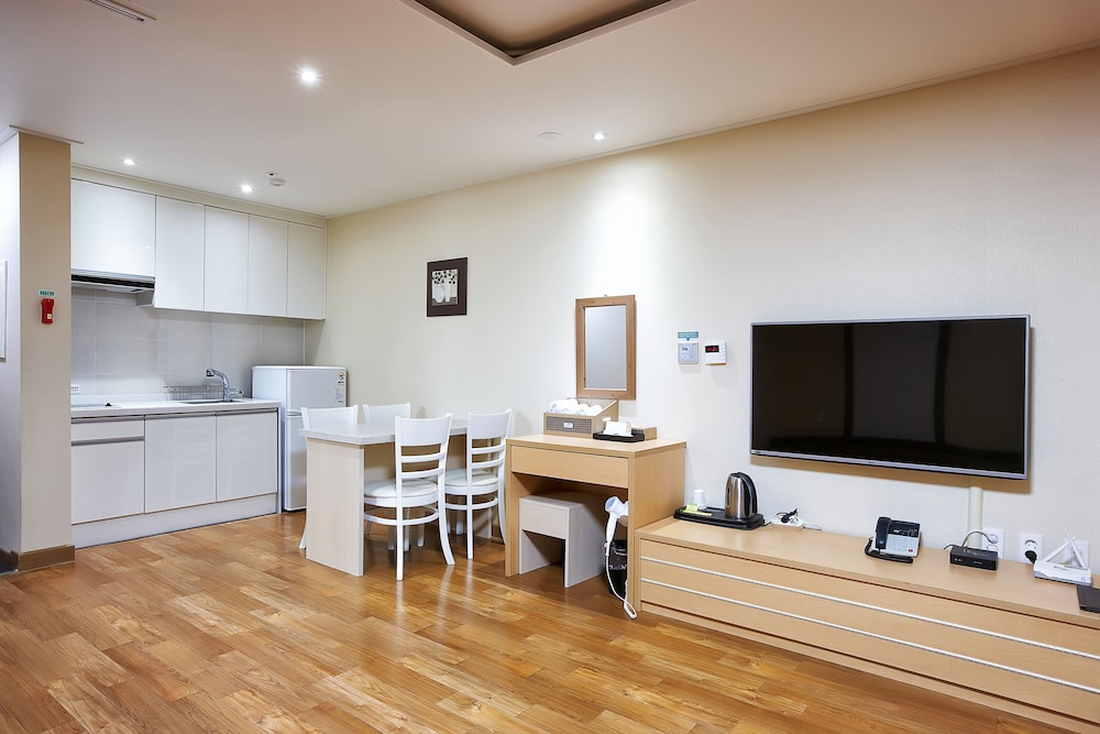 청결하고 이불도 깔끔하고 좋았습니다. 한가지 아쉬운 점이 있다면 비용을 더 주고 취사 가능한 곳으로 룸을 예약했는데 식기류를 찾아 볼 수 없었습니다. 나중에 안 사실이지만 프론트에 얘기하면 식기류를 준다고 하시더러구요. 룸키를 주실 때 설명을 해주셨다면 좋았을텐데 많이 아쉬웠습니다.