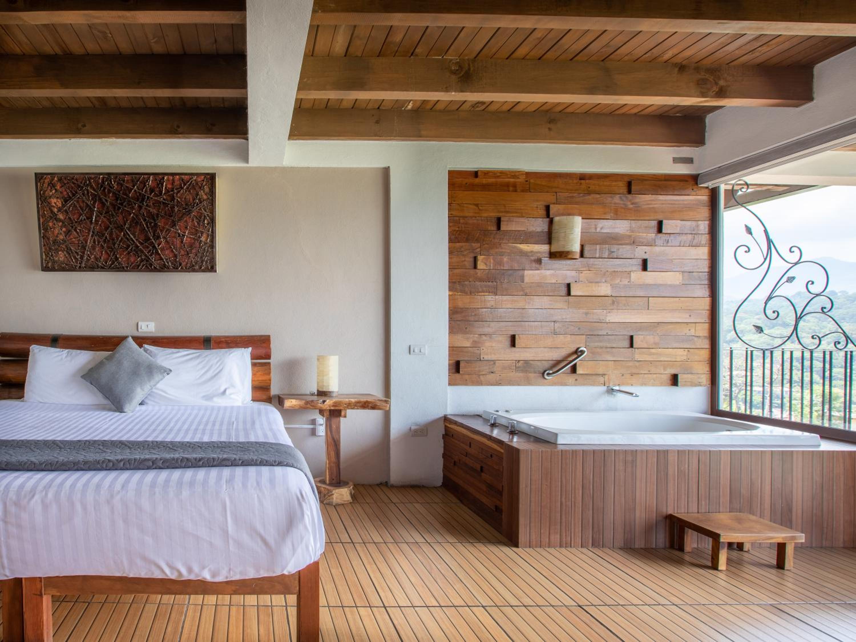 Reservamos una habitación con jacuzzi, pero el agua nunca salió caliente - ni siquiera de la regadera. Los contactos de luz no servían y la manija de la puerta del baño se zafaba cuando querías abrir la puerta.