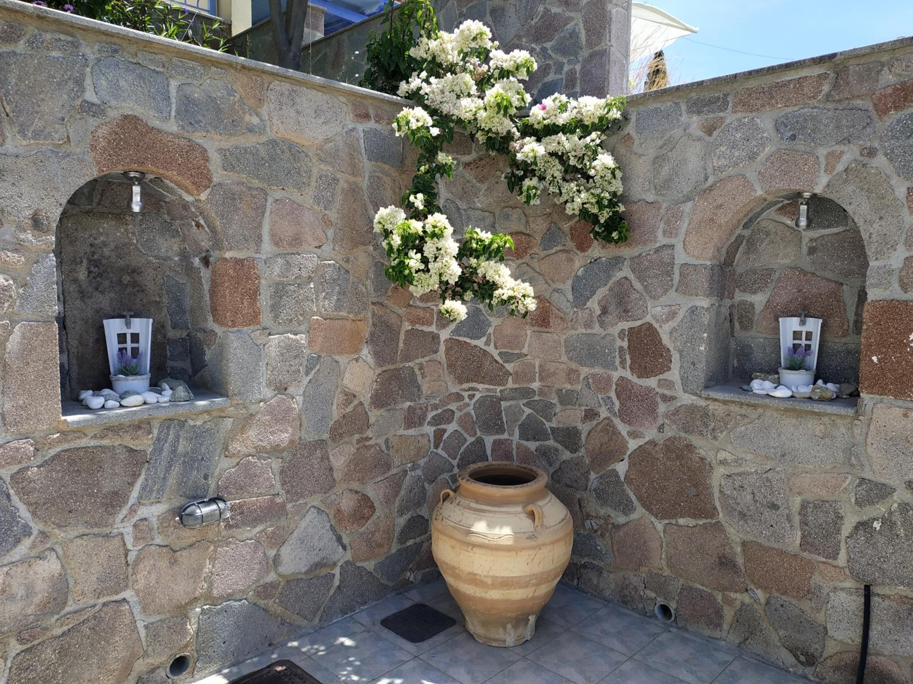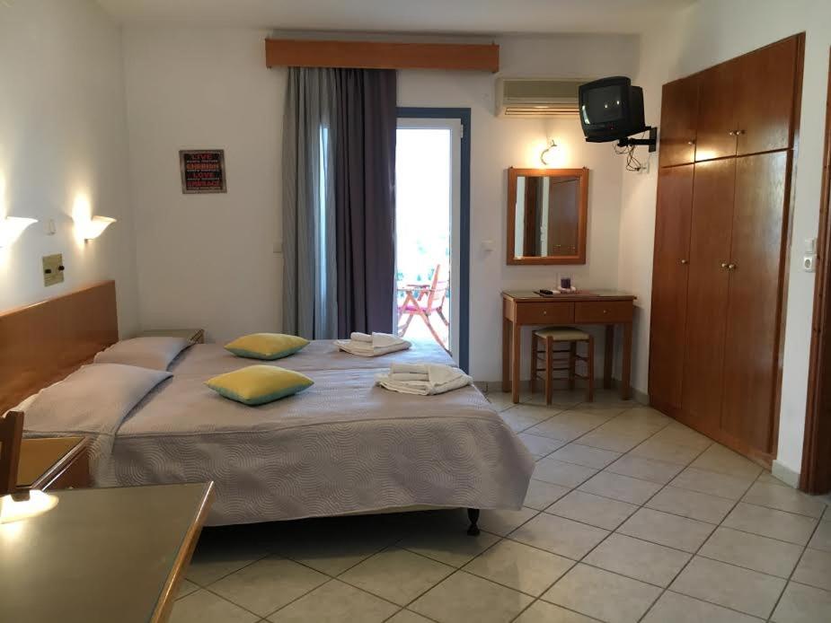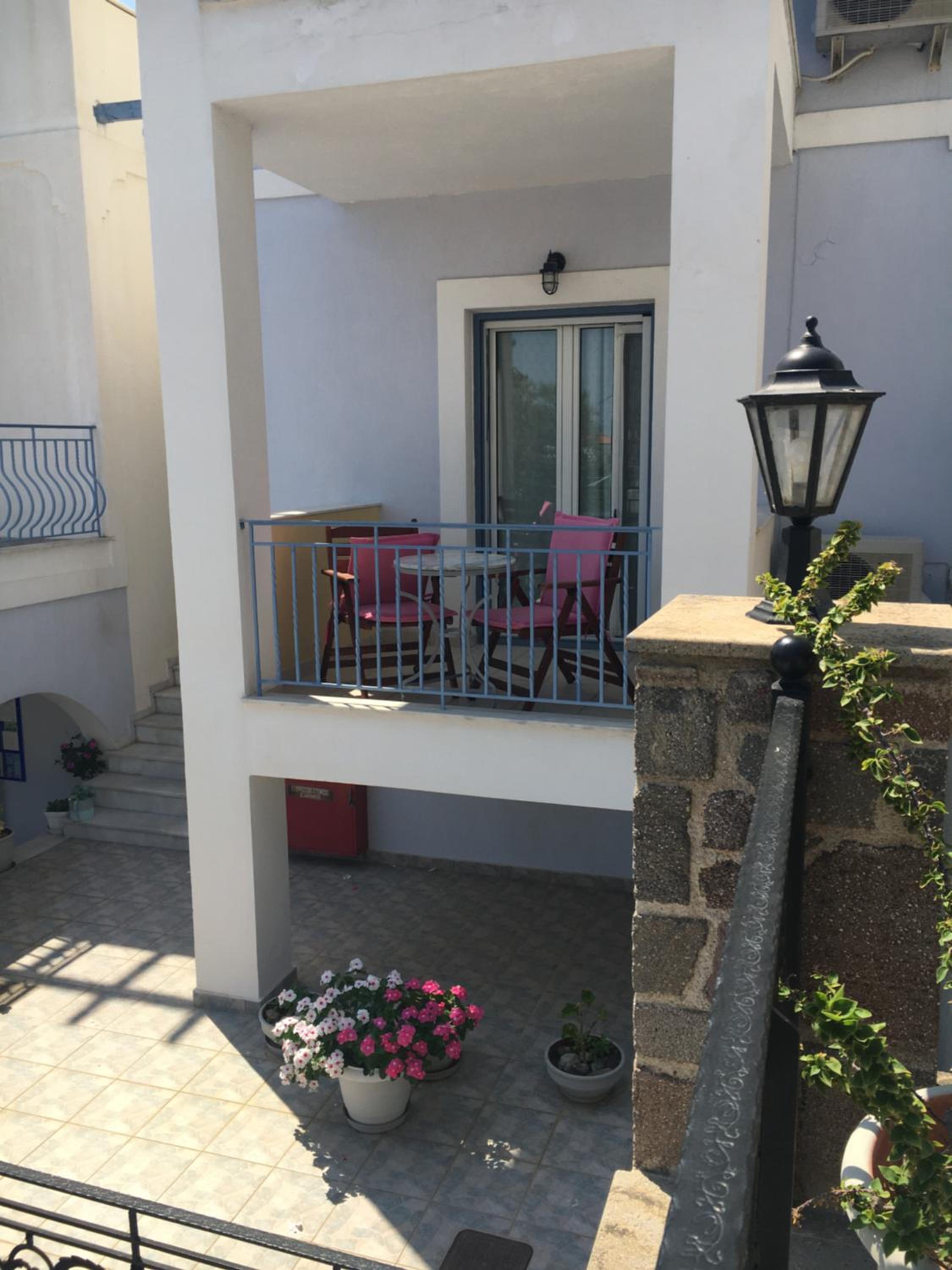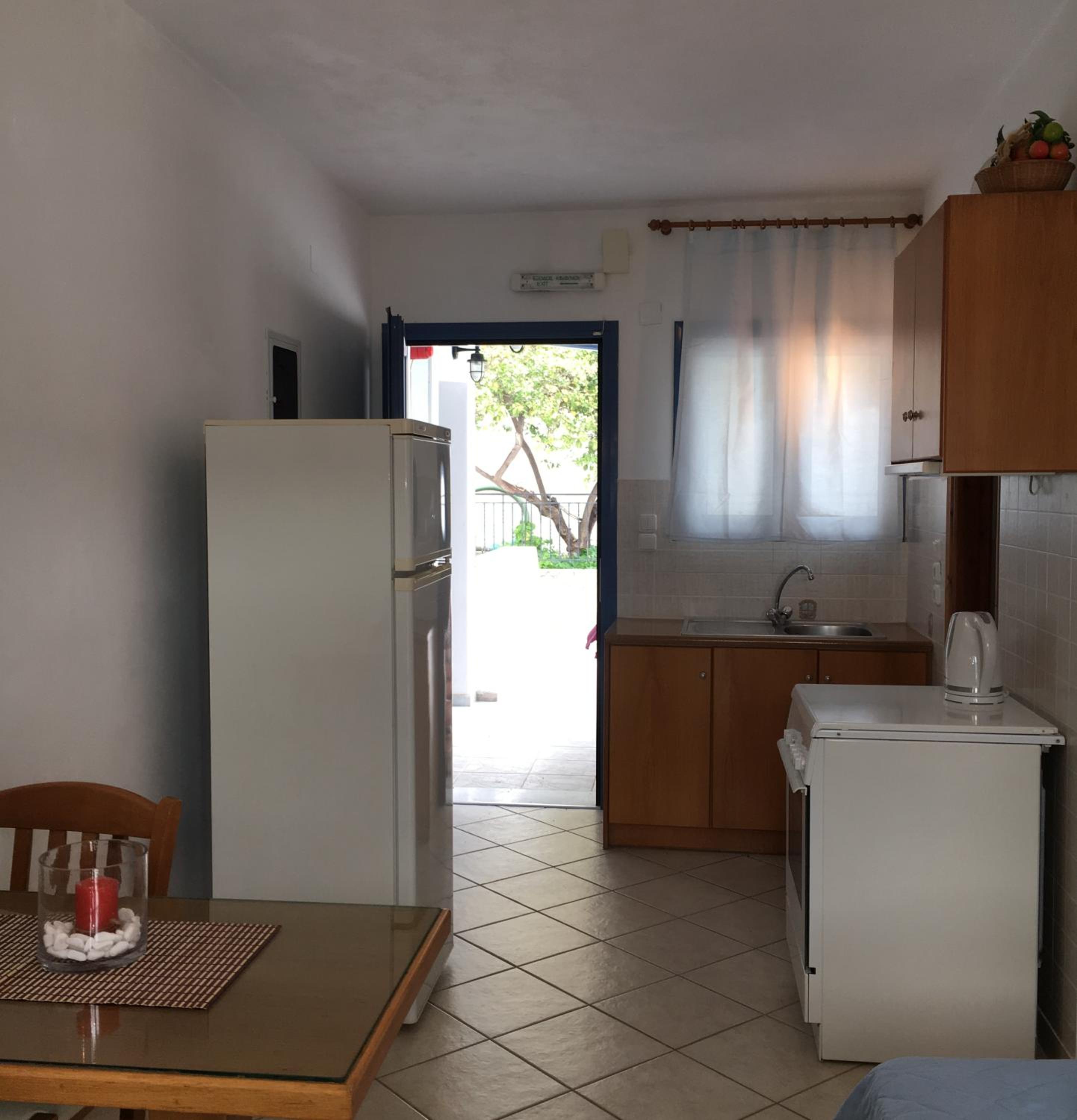 De locatie was geweldig, dichtbij het strand en de haven waar een heleboel restaurants en terrasjes zijn. Giannis en Miranda zijn hele vriendelijke mensen, ze zijn er altijd om je vragen te beantwoorden of om gewoon even een praatje te maken.