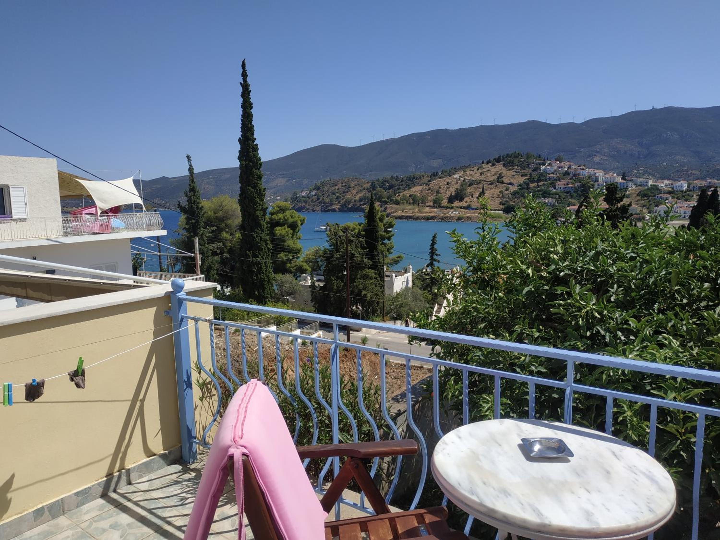 The hosts were fantastic and so accommodating, spent time with us telling us all about Poros. The accommodation was fantastic….beautiful views over the harbour and ocean. The swimming pool was wonderful. We were so close the the beach, restaurants, supermarket, main centre and across the road from the bike rental. Just perfect