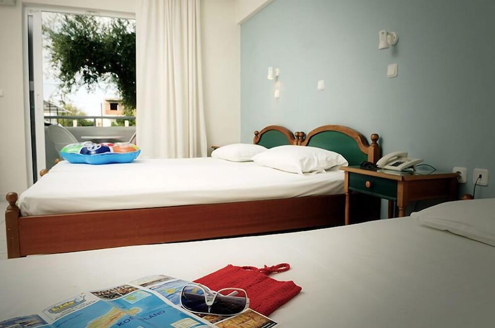 Buona posizione sulla strada principale di tigaki .....piscina ok....camere minimal ma pulite....bagno specie il box doccia da rivedere .....aria condizionata solo a pagamento ma per il resto diciamo un buon posto rapportato alla spesa