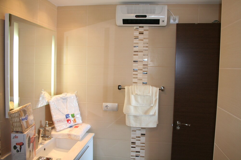 Fin och fräsch lägenhet med två sovrum och två badrum samt balkong med utsikt mot havet. Nackdelen var dock att man var tvungen att stå för att kunna njuta av utsikten.