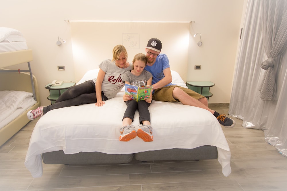 work in progress! rispetto alla descrizione dei servizi su Expedia, ci sono alcune cose tecnicamente corrette ma che ho personalmente trovato un po' ambigue: il parcheggio è si disponibile, vero, ma bisogna camminare per 10' per raggiungerlo; la piscina è disponibile ma in una struttura vicina all'albergo. Inoltre, capisco e gradisco il relax, ma abbiamo aspettato più di mezz'ora da orologio per il check-in (non trovavano la prenotazione) e quindi all'arrivo la camera non era ancora pronta (i letti dei bambini non fatti); il personale delle pulizie non ha rifatto la camera.