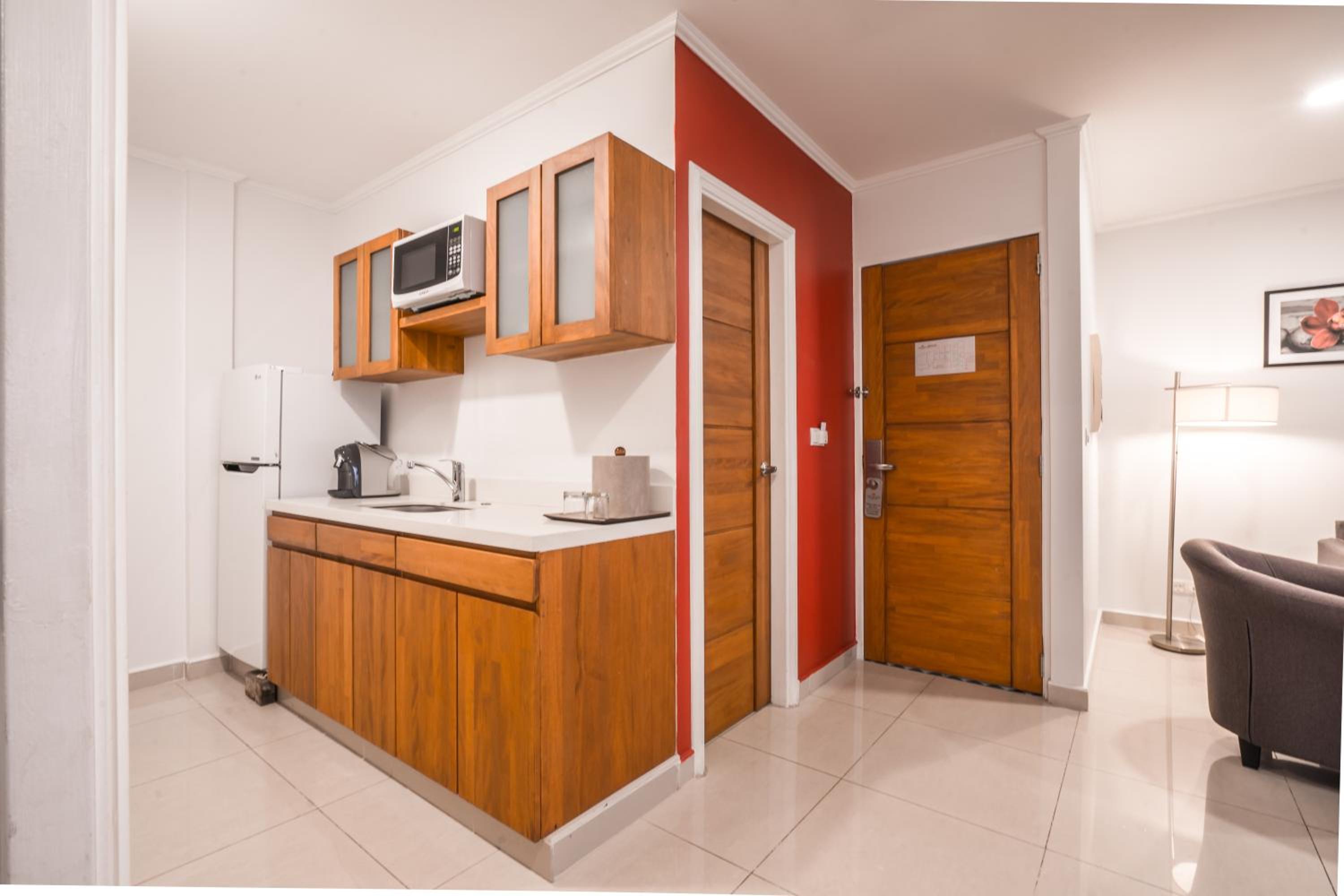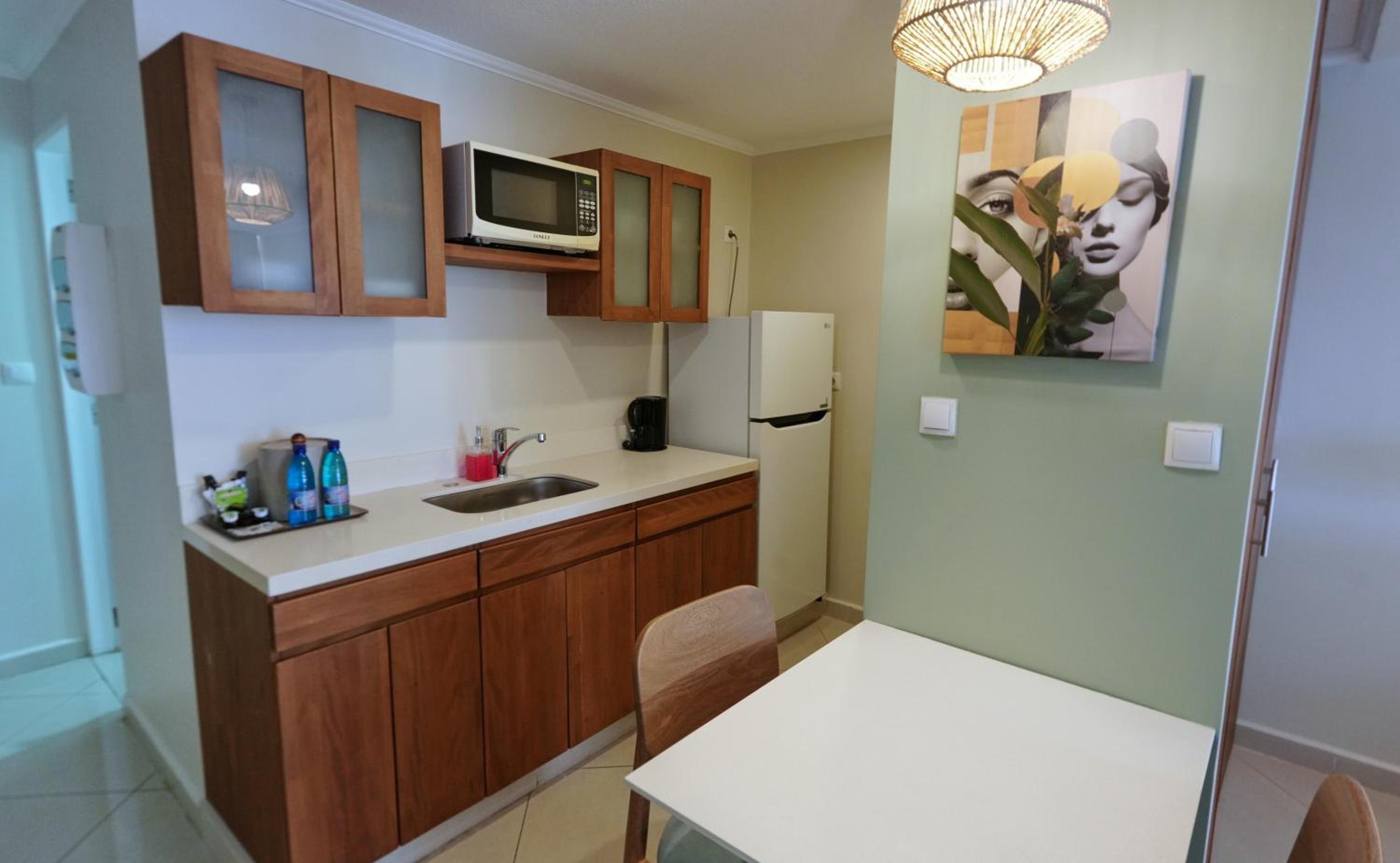 Por otra parte, el área de cocina de la habitación está muy bien PERO. ... hubiera cumplido con las expectativas si me hubiesen facilitado un tostador para hacer mis tostadas por la mañana, ya que no cuenta con hornallas...sólo microondas, cafetera y pava electrica.