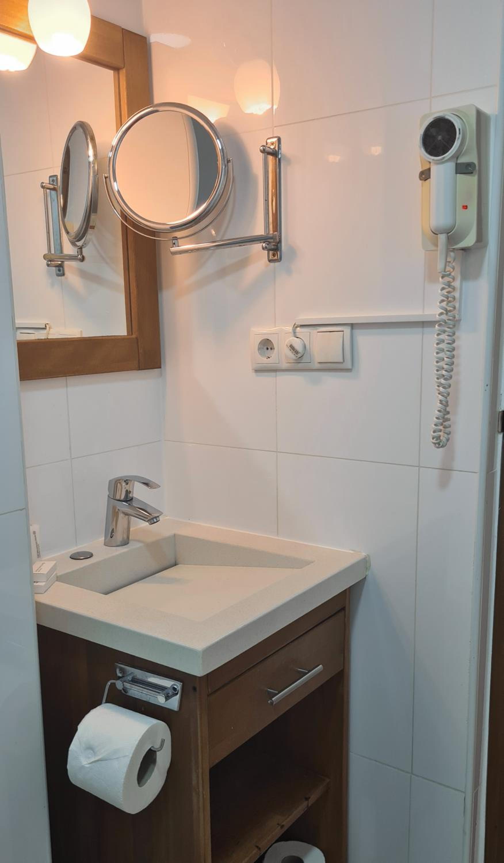 To future hotel guests, please note that there are many electric outlets in the room, but they are European outlets. Please bring a plug converter.